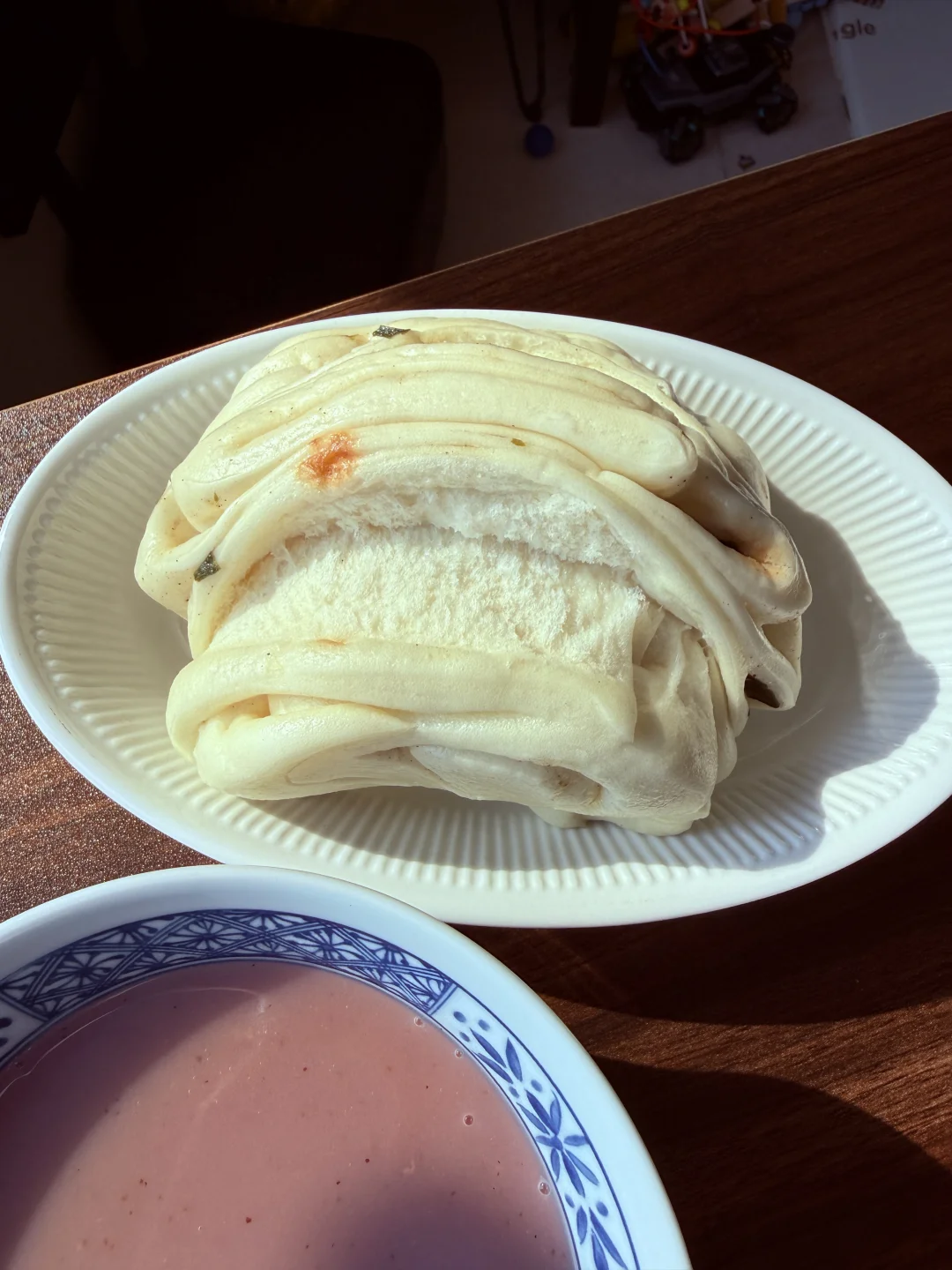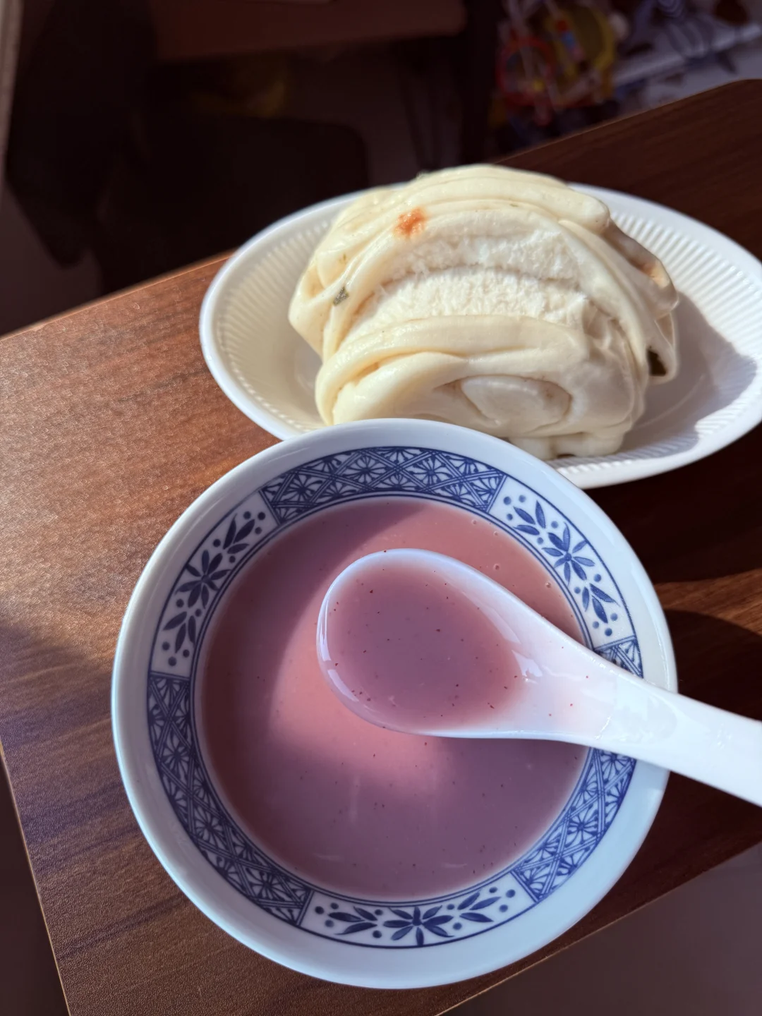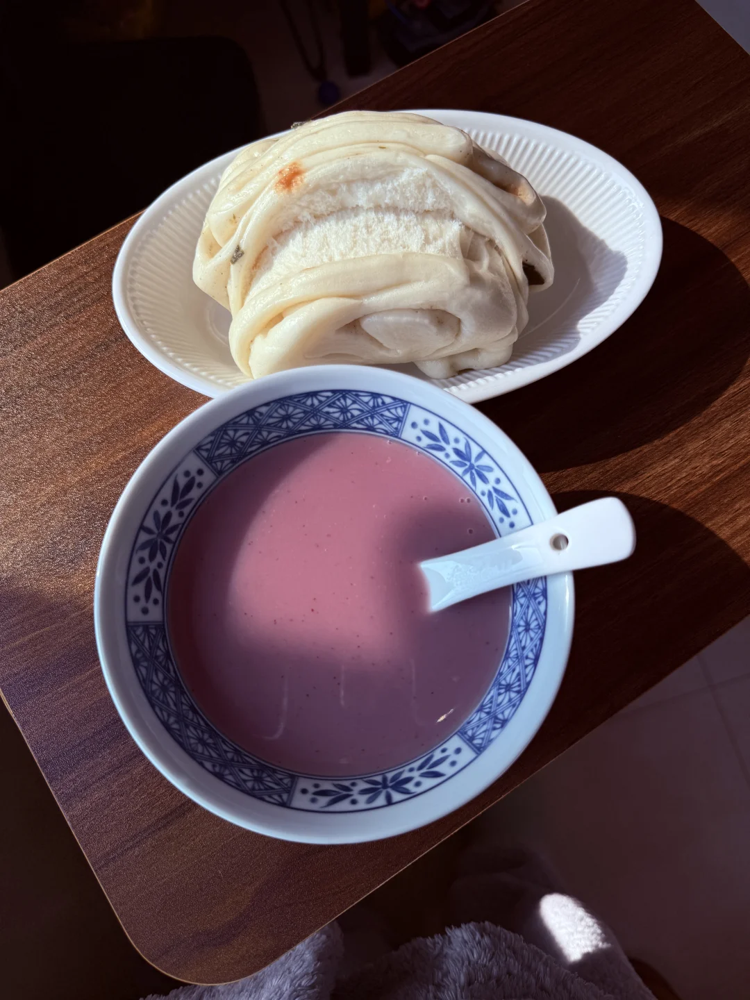 养脾胃早餐:紫薯小米糊➕葱卷