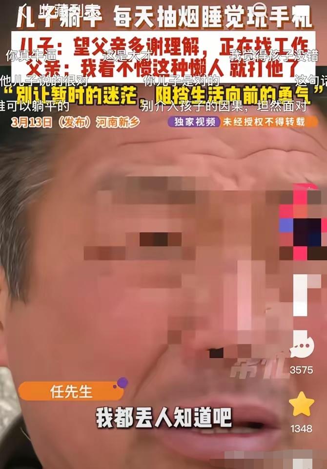 河南新乡,一男子大学毕业不去找工作,整日在家抽烟睡觉玩手机。父亲看不下去了,就说了儿子两句。谁知儿子不听,还认为父亲不理解他,父子俩也闹了矛盾。父亲没办法,找来记者协调。谁知刚一见面,男子甩出“三连问”,把记者也给整懵了。 这名25岁的男子大学毕业之后,一直没有踏入社会找工作,每天的生活就是在家抽烟、睡觉、刷手机,几乎不出门。父亲看着儿子长期这样颓废下去,心里又着急又上火,多次跟儿子沟通,希望他能出去找份工作,自食其力。可每次沟通都不欢而散,儿子觉得父亲只会指责,根本不理解自己,父子俩的矛盾越积越深,家里天天都充满火药味。父亲实在没有办法,只能求助媒体,希望借助外界的力量,让儿子重新振作起来。 让人没想到的是,面对上门调解的记者,这名男子不仅没有丝毫愧疚,反而十分淡定地抛出了三连问。我没犯法吧,我违背公序良俗了吗,我麻烦到别人了吗。这几句话直接让现场的记者一时不知道如何接话。男子表示,自己不是完全不打算工作,只是想慢慢挑选适合自己的岗位,不想随便将就。他还觉得,父亲太过心急,每次交流都是批评和催促,这种强加过来的想法,他根本没法接受。在他看来,父母和子女之间,谁都不该强行改变对方的想法。 父亲在一旁看着儿子这样的态度,情绪当场就绷不住了,忍不住红了眼眶。他说自己辛苦了一辈子,省吃俭用供儿子读完大学,从来没指望孩子大富大贵,只希望他能有份正经工作,能自己养活自己。儿子整天待在家里,不跟外界接触,他既怕别人说闲话,更怕孩子彻底和社会脱节,这辈子都走不出去。这位父亲的想法很朴素,也很真实,就是希望儿子能做一个独立、正常生活的成年人。 这件事看上去只是普通的家庭矛盾,背后却是很多家庭都在面对的两代人观念冲突。在父辈的成长经历里,成年之后独立生活、踏实工作是最基本的担当,大学毕业就该步入社会,承担起自己的人生。他们很难接受孩子毕业之后长期待业在家,在他们眼里,这就是逃避现实,就是不务正业。 现在的年轻人面对的环境完全不同,就业压力大,求职过程中屡屡碰壁的人不在少数。很多人毕业后会陷入迷茫,有的人会选择慢就业,想花时间调整状态,找到真正适合自己的方向,不愿意为了上班而随便找一份工作。这名男子用三连问维护自己的生活方式,本质上是在对抗父辈的焦虑,想按照自己的节奏生活。 我们不能一味地指责年轻人躺平、啃老,也不能简单地说父母太过强势。年轻人可以有自己的人生规划,也可以有短暂的迷茫期,但不能一直依靠父母生活。长期在家不工作,不仅消耗着家里的经济,也在消耗自己的青春和能力,这并不是对自己负责的态度。父母的出发点全是为了孩子好,可一味地指责和催促,只会拉大两代人的距离,让原本可以沟通的事情,变成无法化解的矛盾。 真正和谐的家庭关系,从来不是一方强迫另一方,而是互相理解、互相让步。父母可以多给孩子一点时间和耐心,少一些指责,多一些沟通。年轻人也要明白,迷茫可以有,但不能一直逃避,短暂的休整是为了更好地出发,而不是一直停在原地。真正的长大,是学会对自己的人生负责。 各位读者你们怎么看?欢迎在评论区讨论。