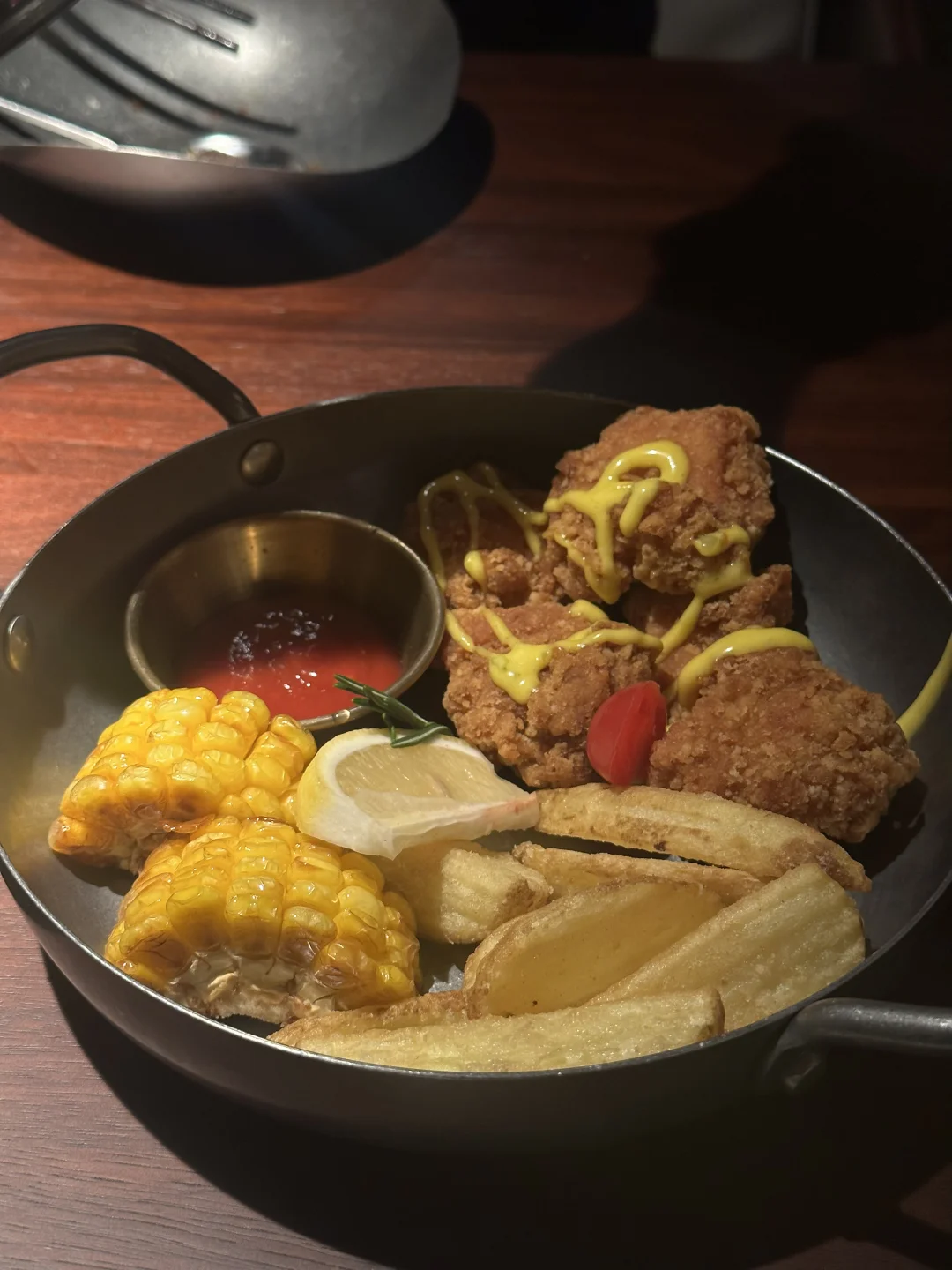 🌟炸鸡配菜有薯条和玉米🌽 里面的玉米是烤过的