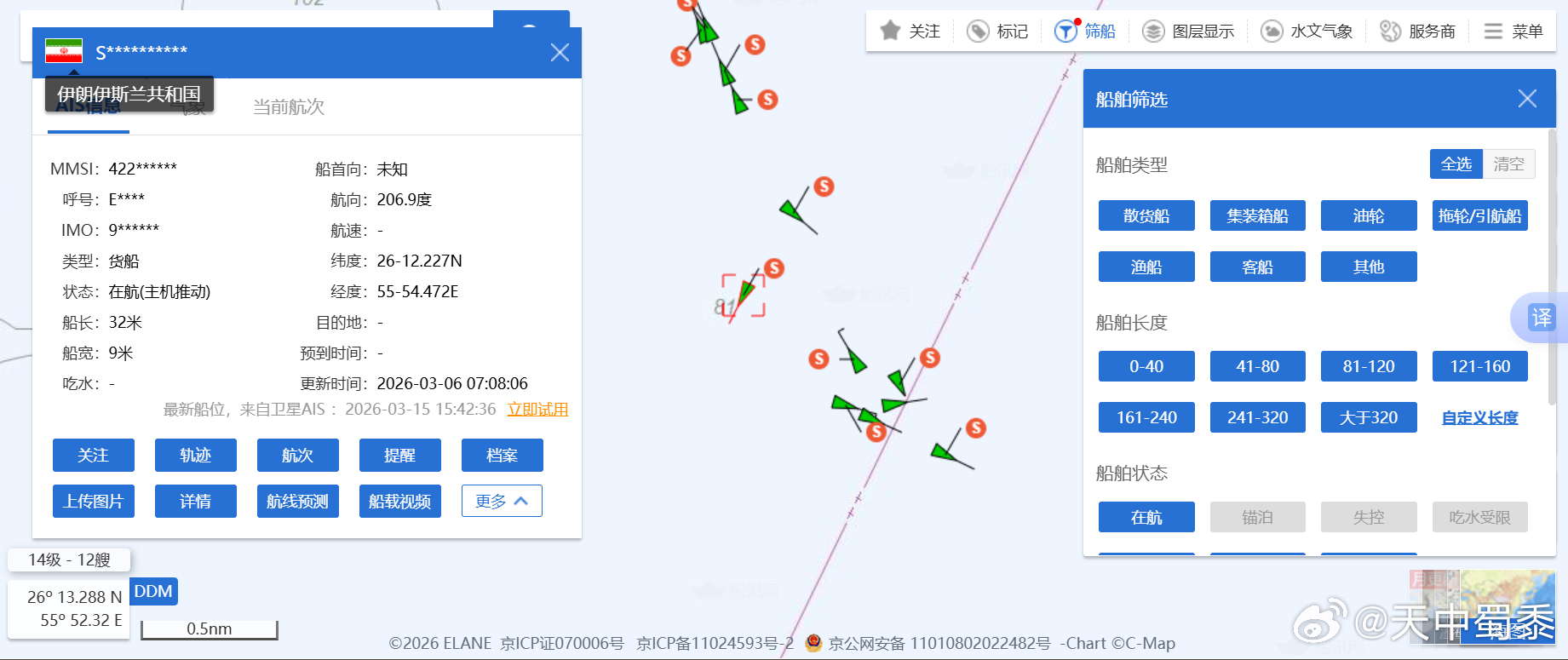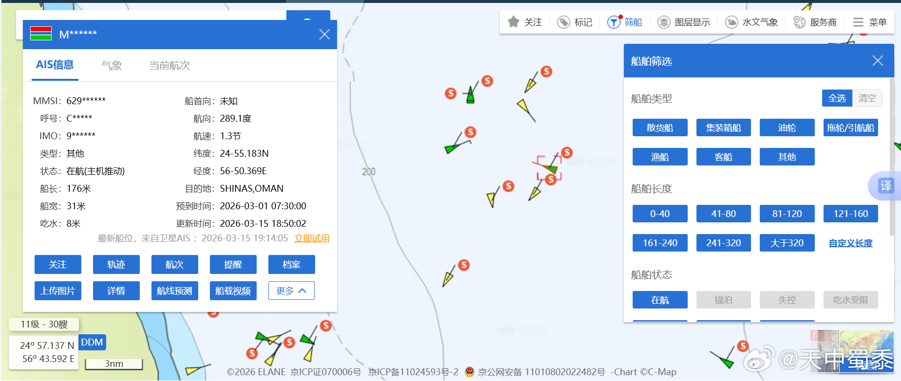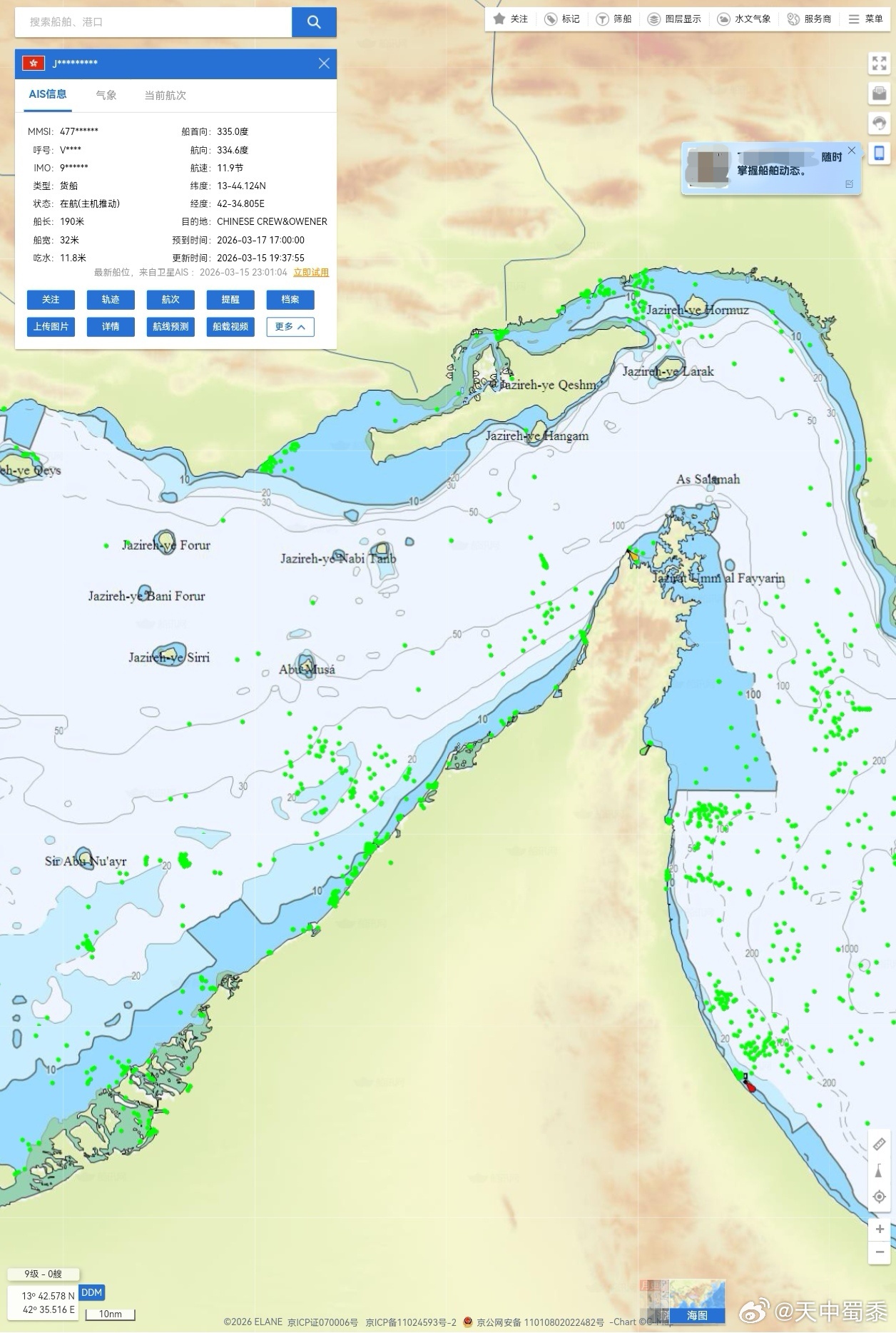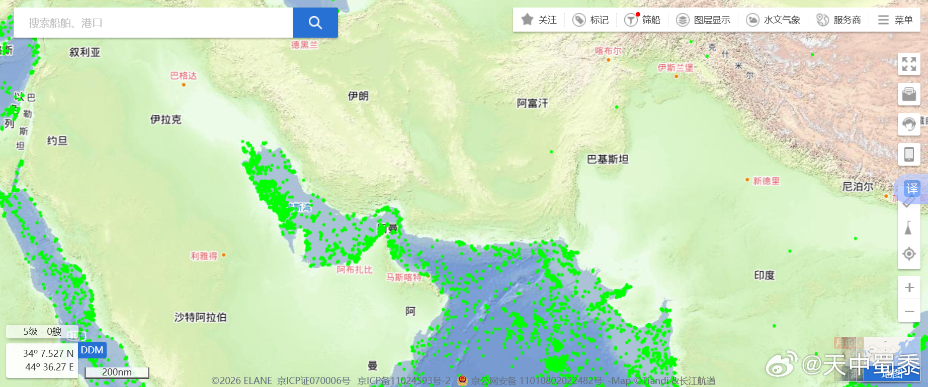 可是霍尔木兹海峡海峡真的被伊朗封锁了吗?船真的过不去了吗?非也!刚刚我查了国际船舶航运实时图,清楚得很,拖船、货船、捕捞船,甚至游艇都在正常运转。