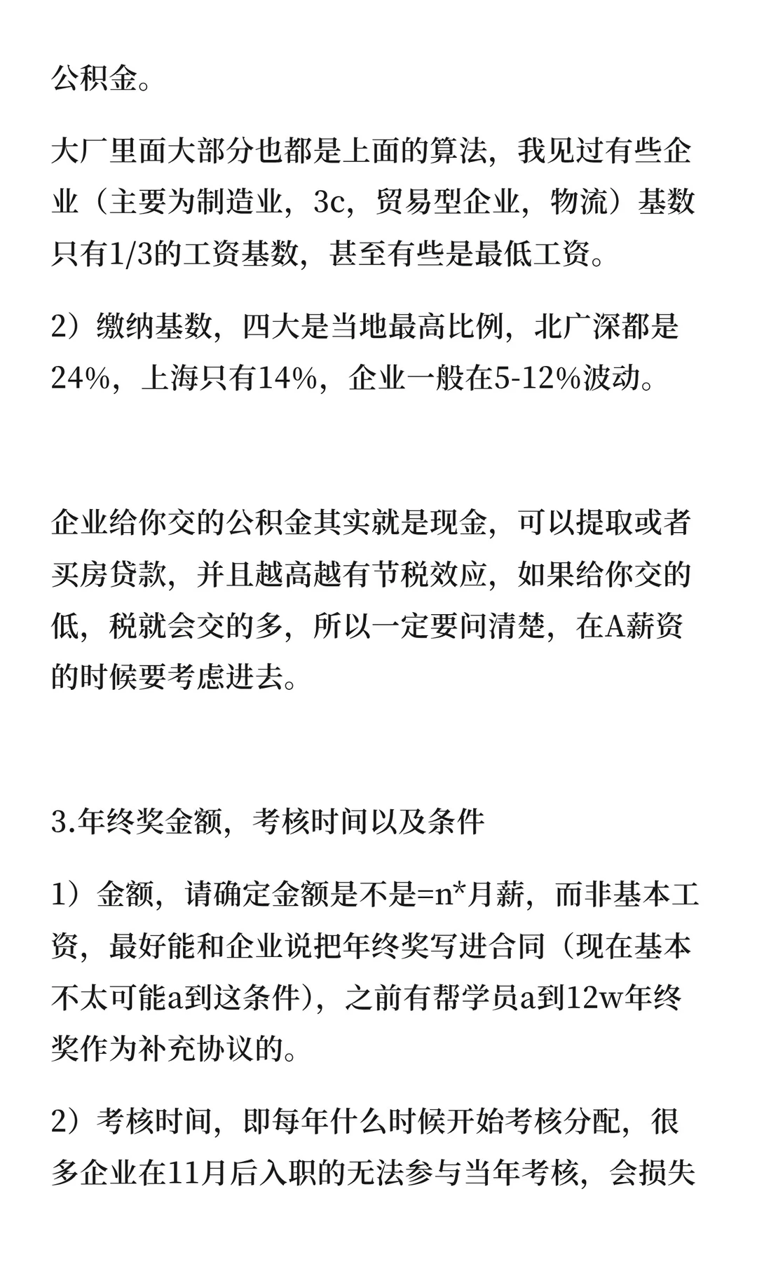 1)金额,请确定金额是不是=n*月薪,而非基本工资,最好能和企业说把年终奖写进合同(现在基本不太可能a到这条件),之前有帮学员a到12w年终奖作为补充协议的。