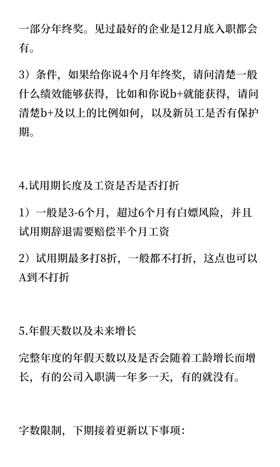 3)条件,如果给你说4个月年终奖,请问清楚一般什么绩效能够获得,比如和你说b+就能获得,请问清楚b+及以上的比例如何,以及新员工是否有保护期。