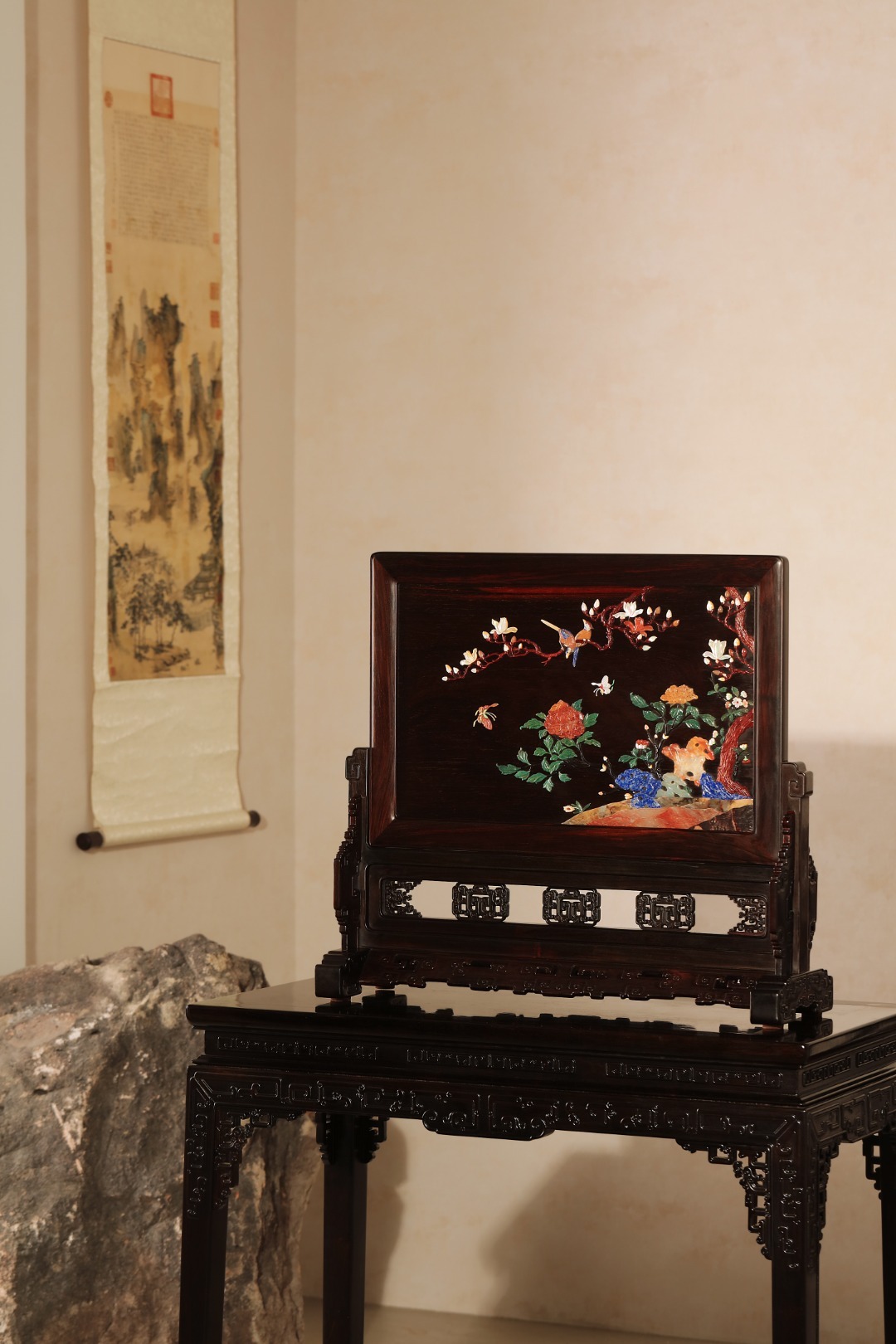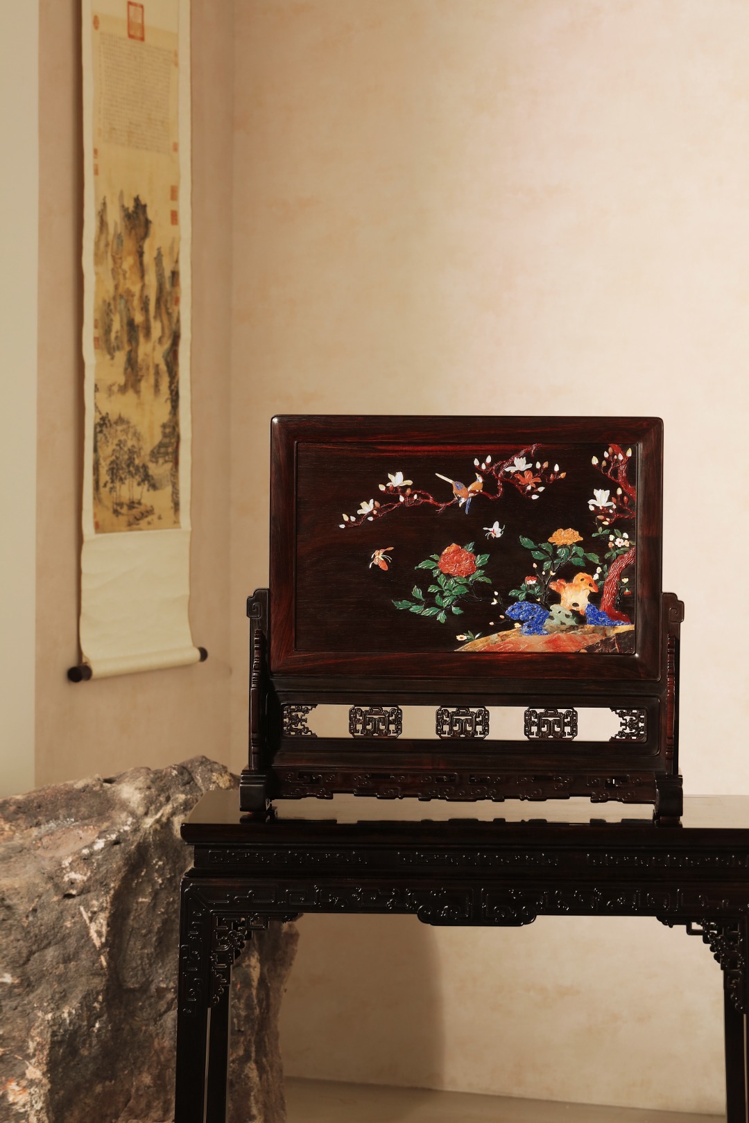 酸枝x百宝嵌『富贵有喜』大插屏