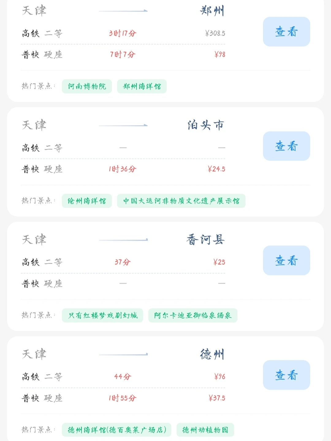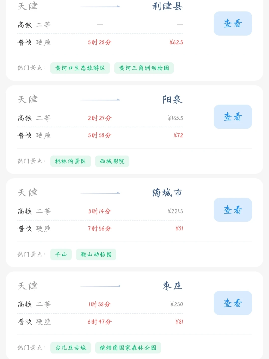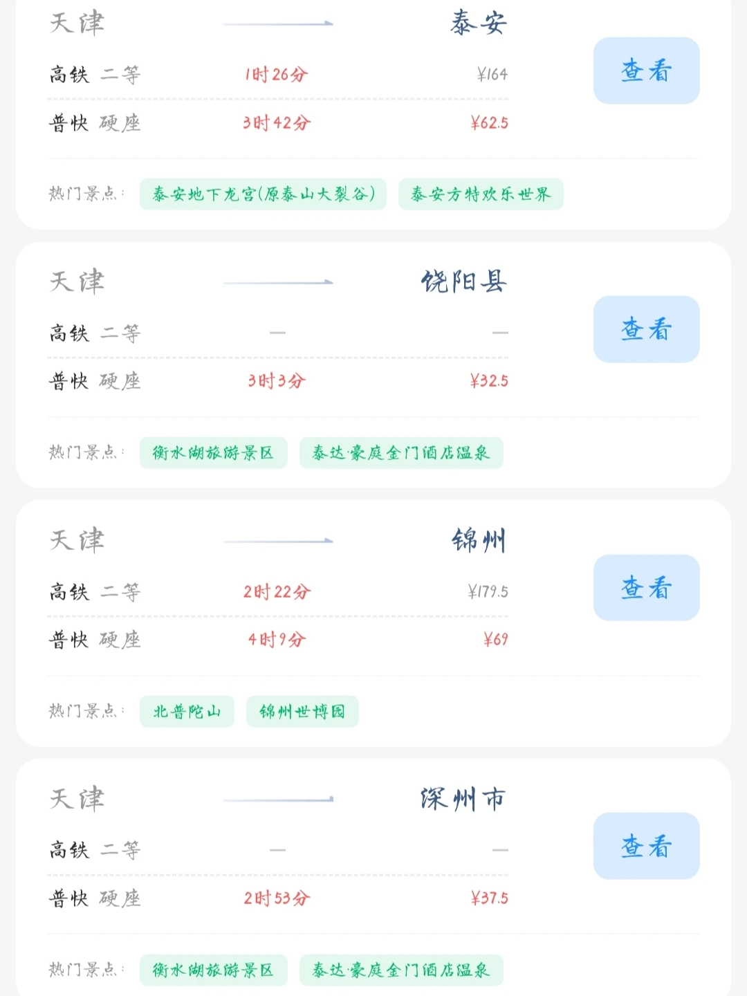 常驻天津的大学生和打工人朋友请看! 帮大家汇总了一份天津出发100块的火车票就能去的旅游城市合集 里面有很多城市大家可以选几个自己想去的旅游城市 刚好中秋国庆小长假快到了拉上朋友们一起去玩吧[色色R]