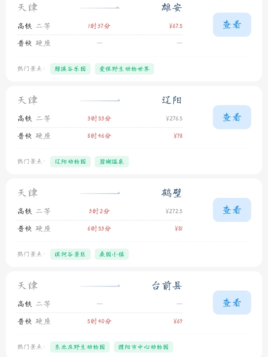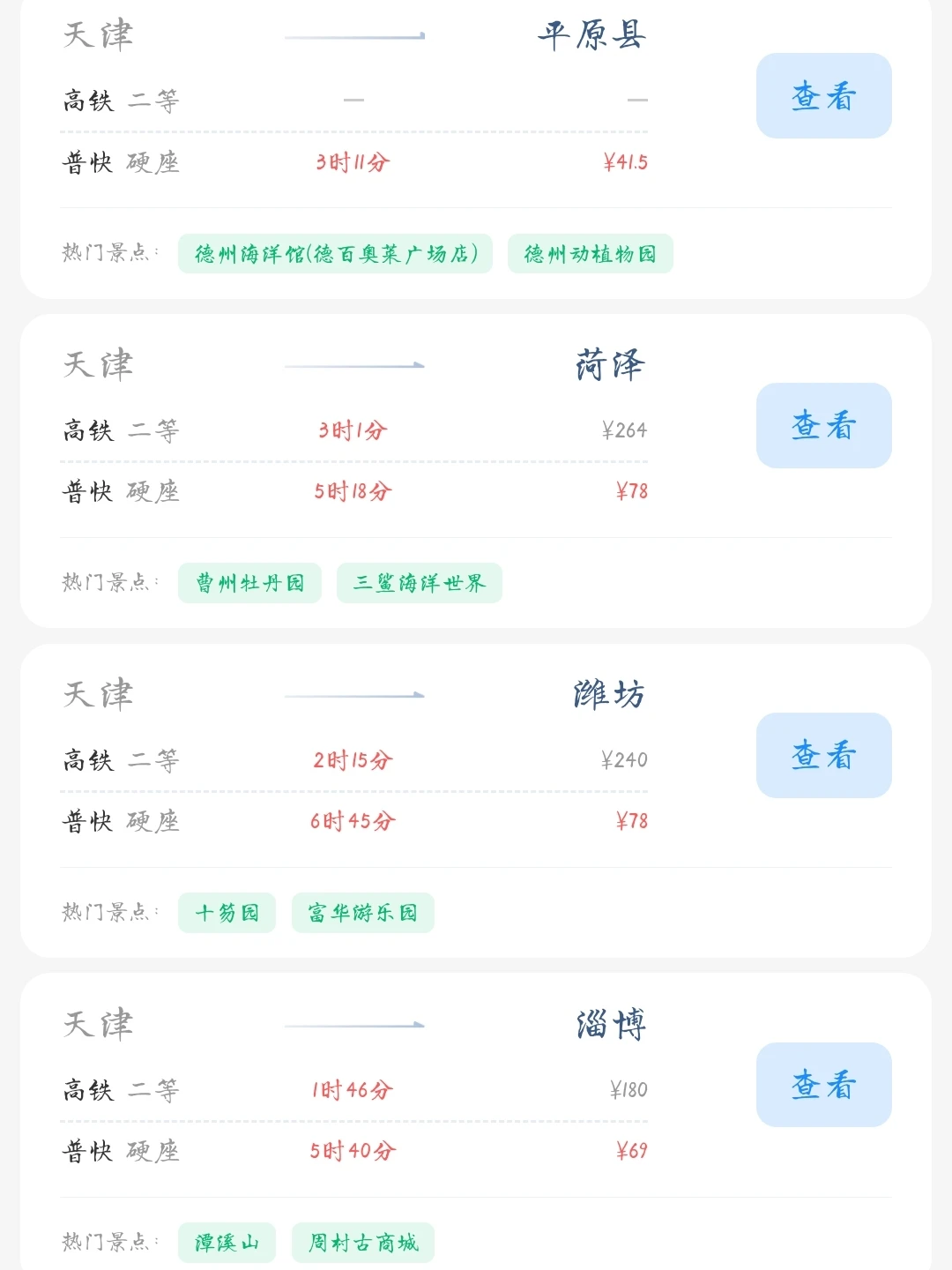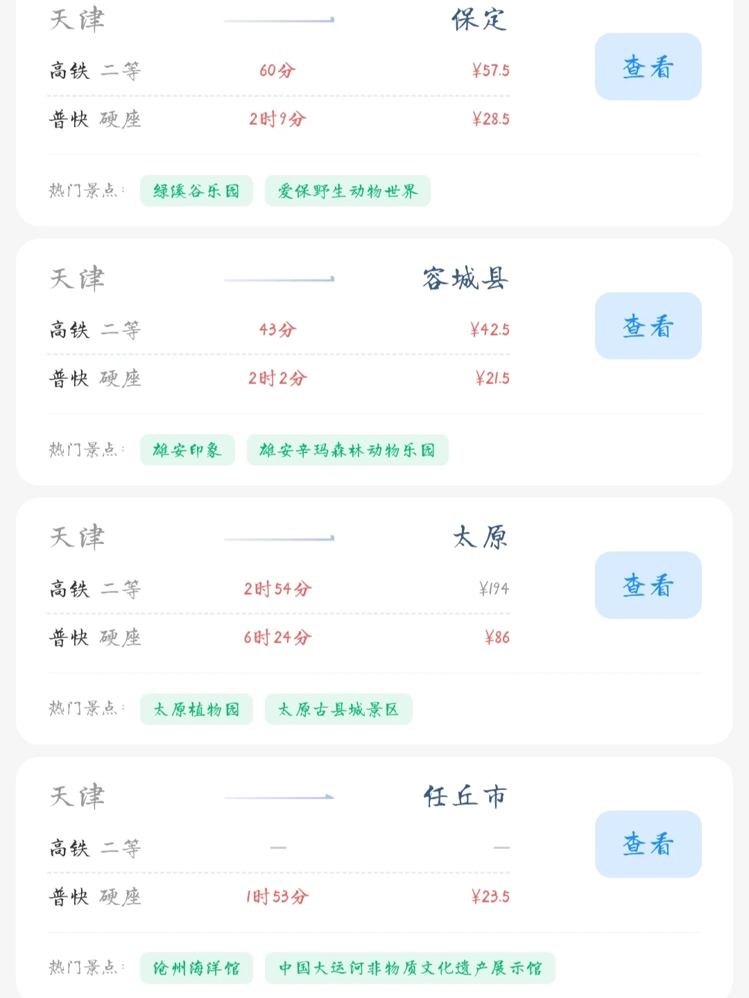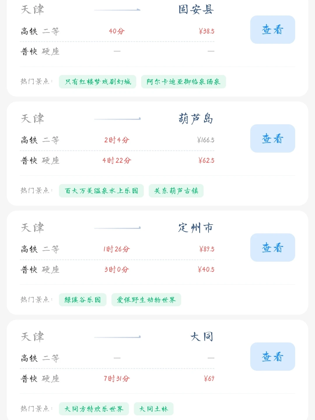 常驻天津的大学生和打工人朋友请看! 帮大家汇总了一份天津出发100块的火车票就能去的旅游城市合集 里面有很多城市大家可以选几个自己想去的旅游城市 刚好中秋国庆小长假快到了拉上朋友们一起去玩吧[色色R]
