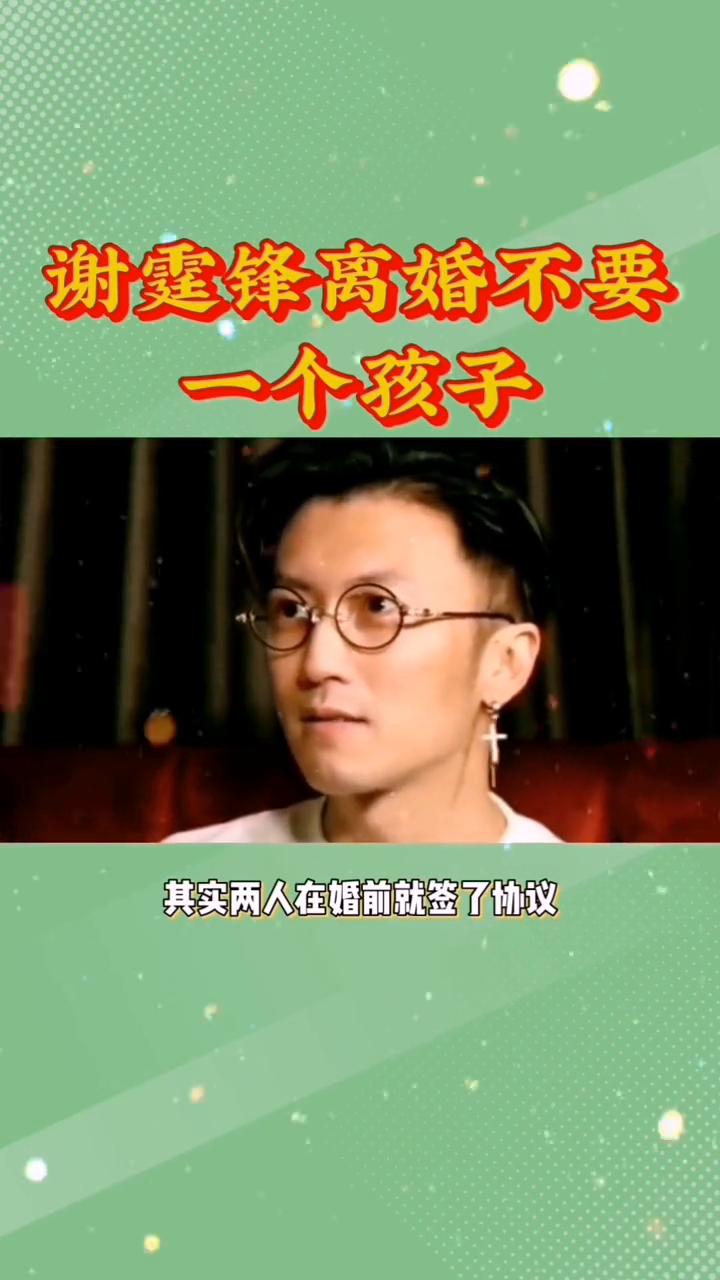 谢霆锋离婚不要一个孩子。 本以为谢霆锋离婚一个孩子都不要是为了跟王菲再续前缘,得知真相后才得知他究竟有多冤枉。当时因张柏芝那件事的发生,两人婚姻走到今,大家没想到的是他竟然一个娃没要,并且在不久之后就传出了他和王菲世纪大复合。而张柏芝离婚后独自辛苦带俩娃,大家纷纷表示谢霆锋是个不负责任的男人。 但事实却并非如此,是大家冤枉他了。其实两人在婚前就签了协议,假如以后会离婚,无论生了几个孩子要归张柏芝所有,谢霆锋不是不想要,而是他要不到。但想问张柏芝一句,他咋知道会离婚? 感谢观看,哥娱乐站。