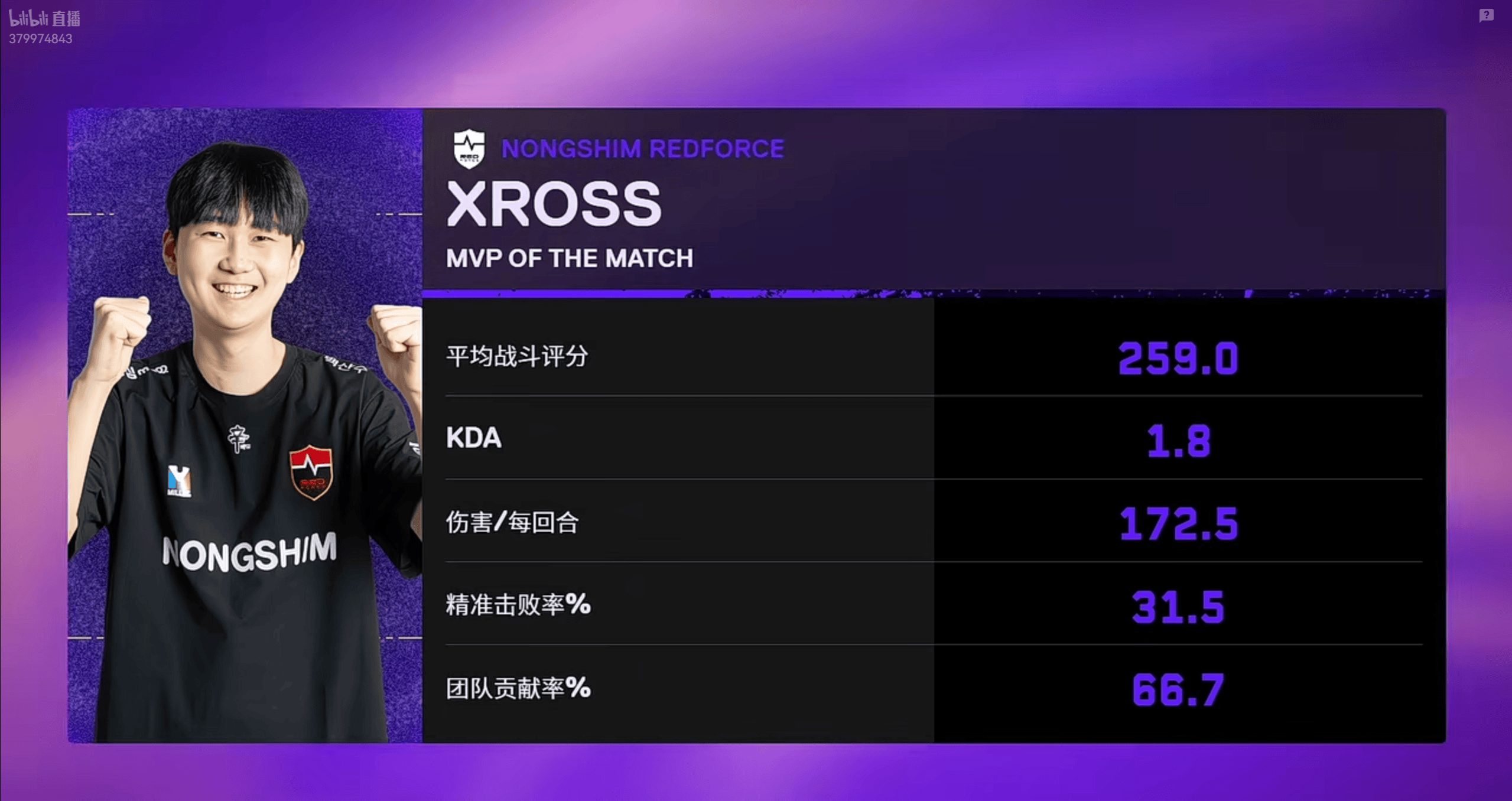 259战斗评分1.8KDA,Xross斩获NS对阵PRX图一MVP