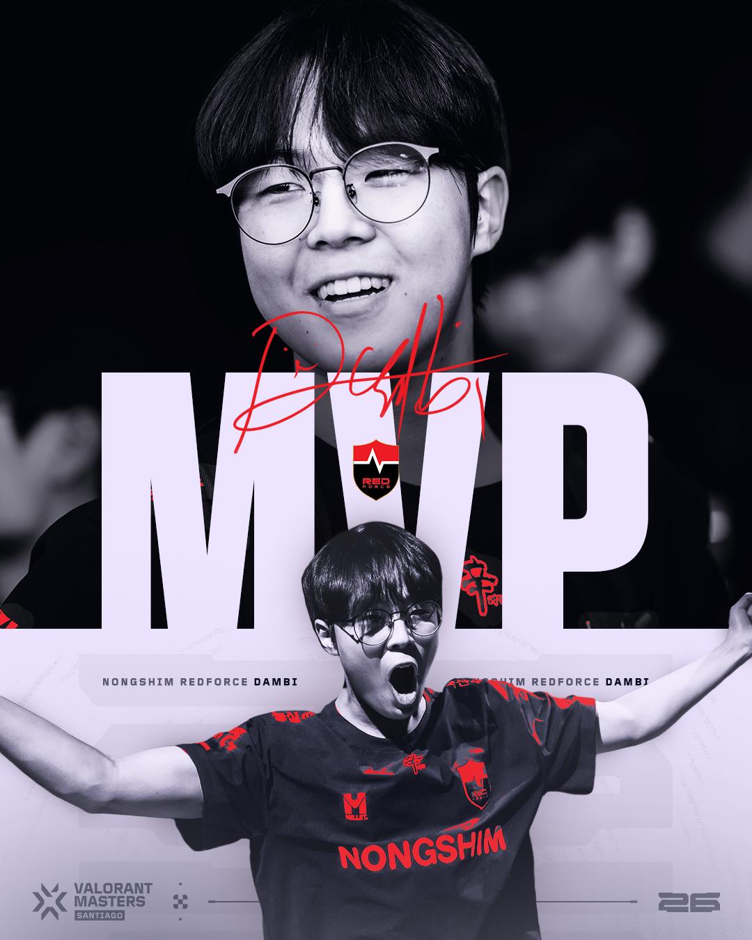 虎扑03月16日讯在NS夺得2026圣地亚哥大师赛冠军后,VCT官推发布Dambi的圣地亚哥赛事MVP海报: