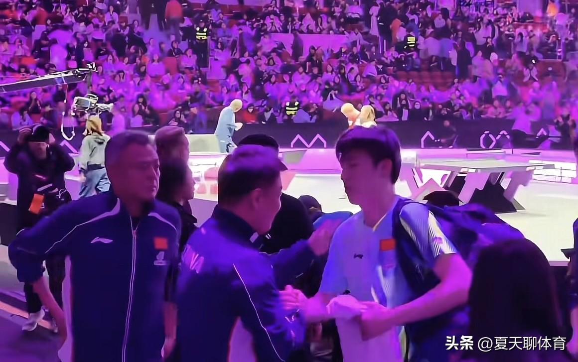 赛后暖心一幕!昨晚上男单决赛,温瑞博输给了法国一哥后,低头捂脸失落!下场时,秦志戬教练和王皓教练俩人在通道口亲自等待温瑞博下场,俩人都拍了拍温瑞博的肩膀,看台上的球迷呐喊:温瑞博,加油!温瑞博加油!其实半决赛打赢张本智和这场比赛,就已经超过了国乓其他队员,冠军慢慢来,虽有遗憾,但都是前进的动力!估计教练组都没想到拿外卡参赛的温瑞博能打到决赛!小孩哥温瑞博为男单注入了新鲜血液!