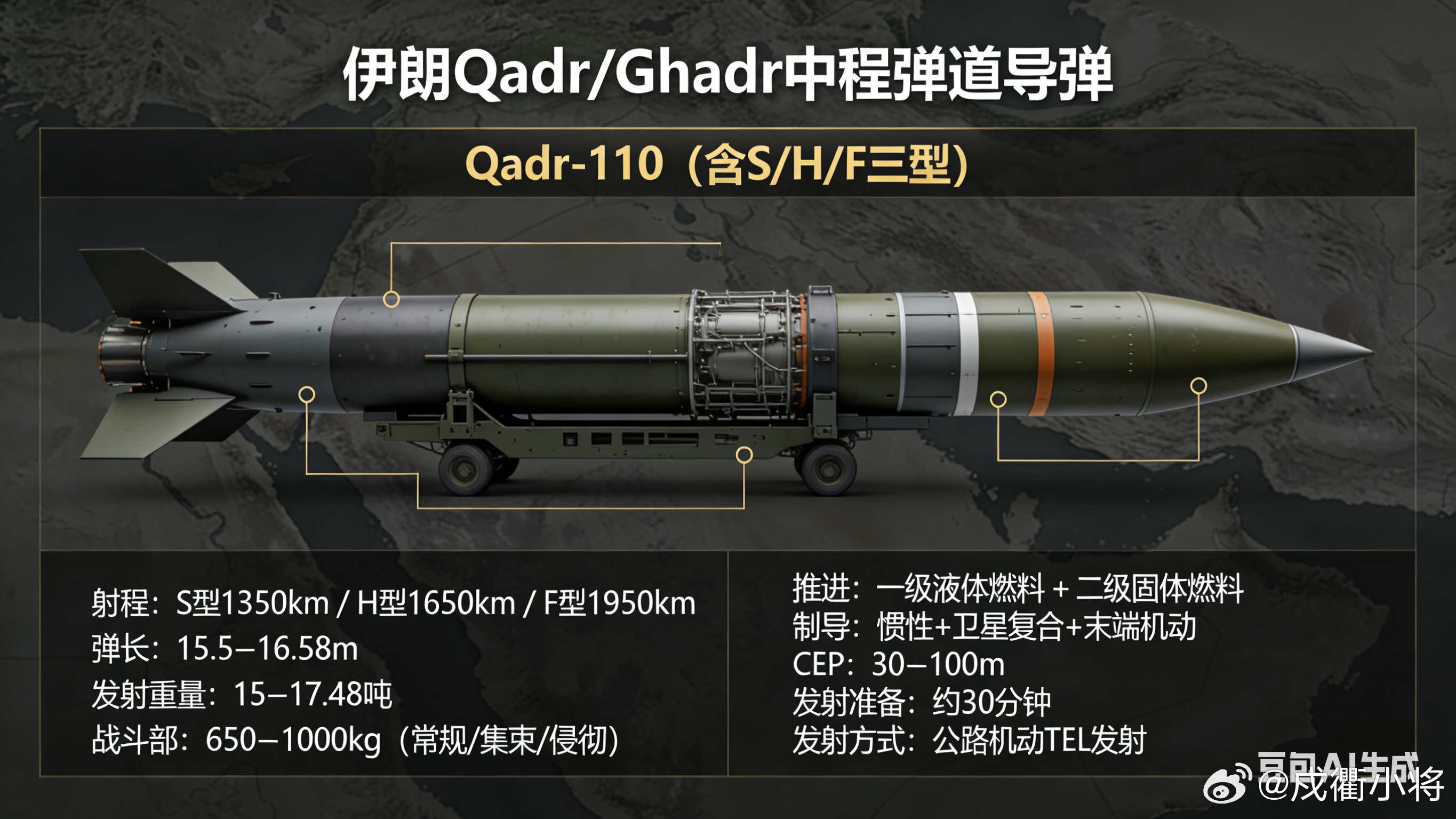 加德尔导弹作为伊朗主力中程弹道导弹,凭借出色的射程覆盖能力与突防性能,成为区域战略威慑的重要力量,在多次实战行动中验证了其可靠的打击效能。美伊以冲突全球武器装备盘点军事ai新视野