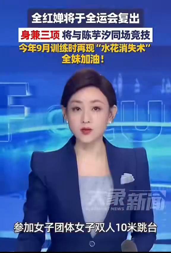 全红蝉将于全运会复出。 大象新闻主播陈静华。 全红婵将于全运会复出,身兼三项将与陈芋汐同场竞技,今年9月训练时再现"水花消失术",全妹加油! 全红蝉将于全运会复出,据第十五届全运会官网显示,已经5个月未参加正式比赛的两届奥运会跳水冠军全红婵将于11月初的大湾区全运会复出,代表家乡广东队参加女子团体女子双人10米跳台、女子单人10米跳台三个项目的比赛,力争三金王。这意味着全妹将在十五运会赛场复出,时隔半年再次参加跳水比赛,身兼三项将与陈芋汐同场竞技。