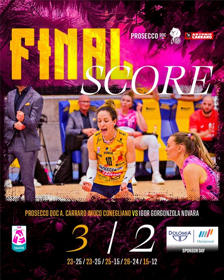 直播吧3月16日讯意甲女排联赛半决赛首回合,科内利亚诺让二追三大逆转诺瓦拉,占得先手。