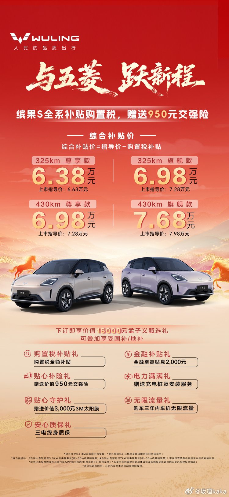 刚上市的五菱缤果S,权益价值有6万多,也是空间比较大的选手,同时还加了点SUV的跨界设计。