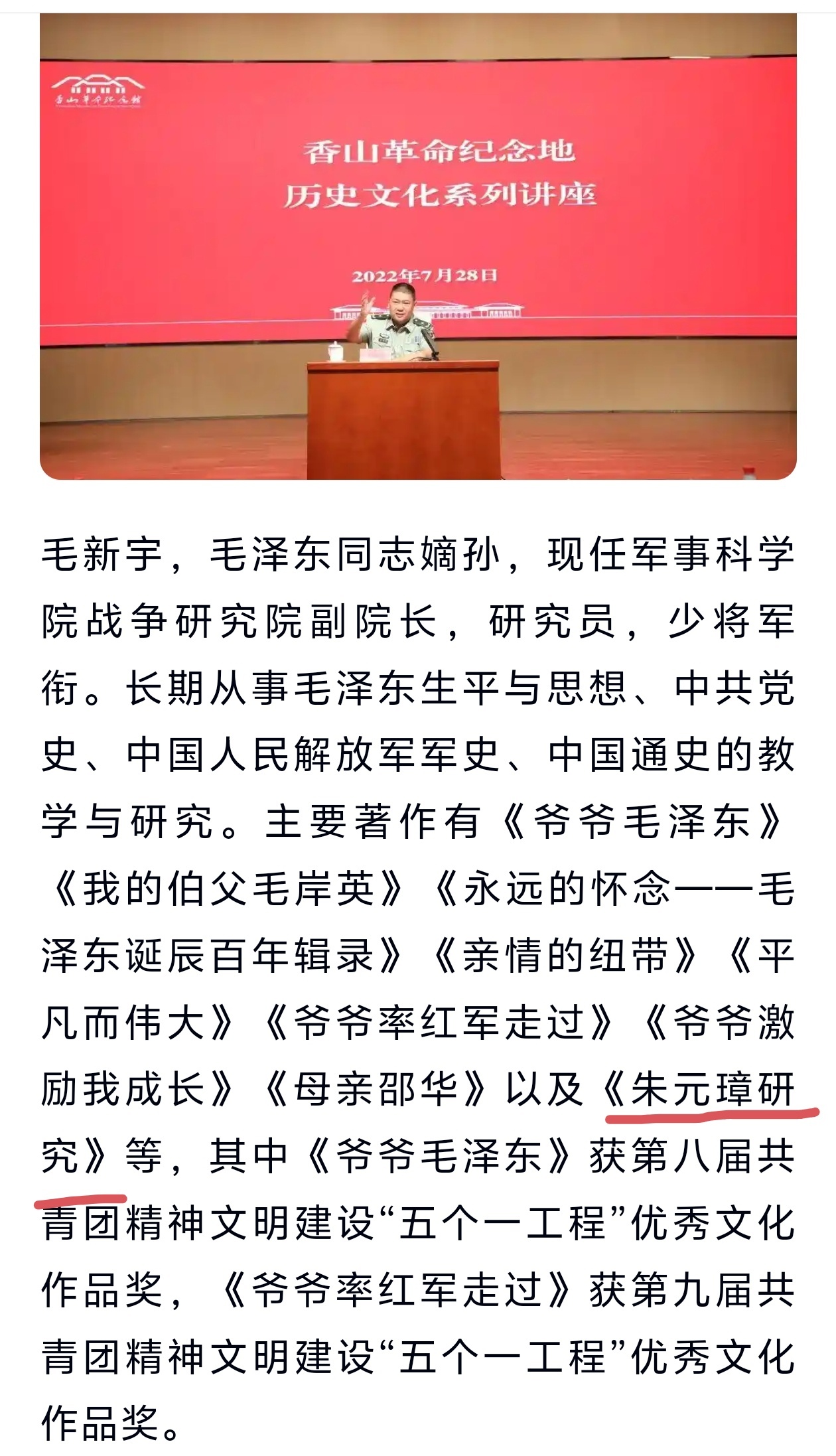 教员之孙毛新宇《研究朱元璋》防朱格格怎么看?正本清源 武汉