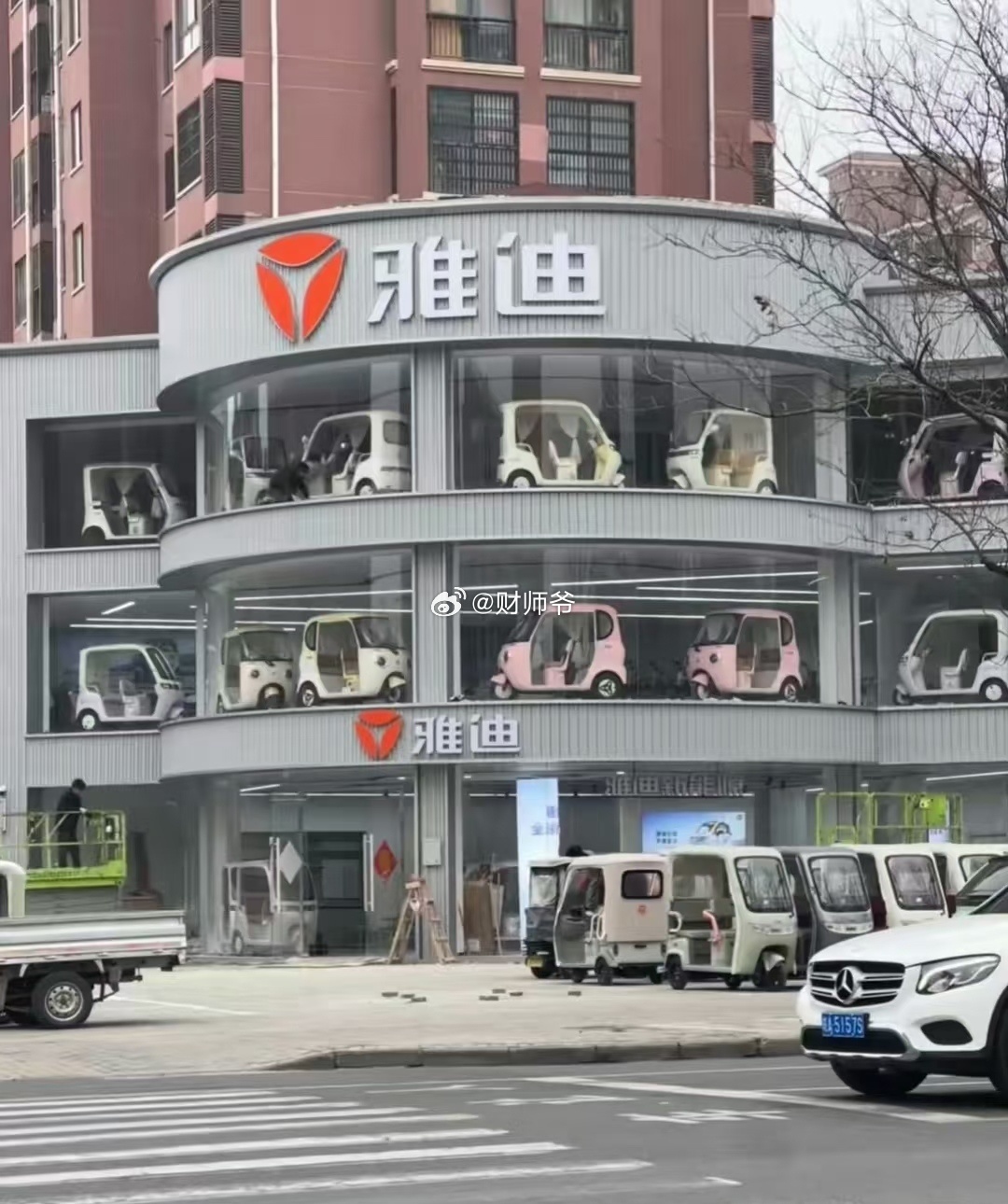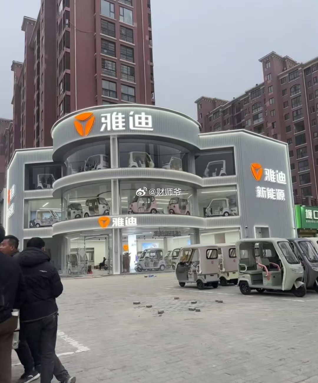 安徽颍上县的雅迪“三蹦子”4S店出圈了。