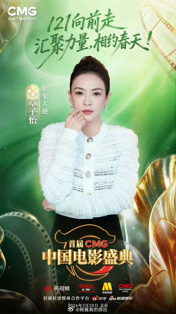 章子怡,双重身份亮相!3月15日上午,电影频道官宣:章子怡担任首届CMG中国