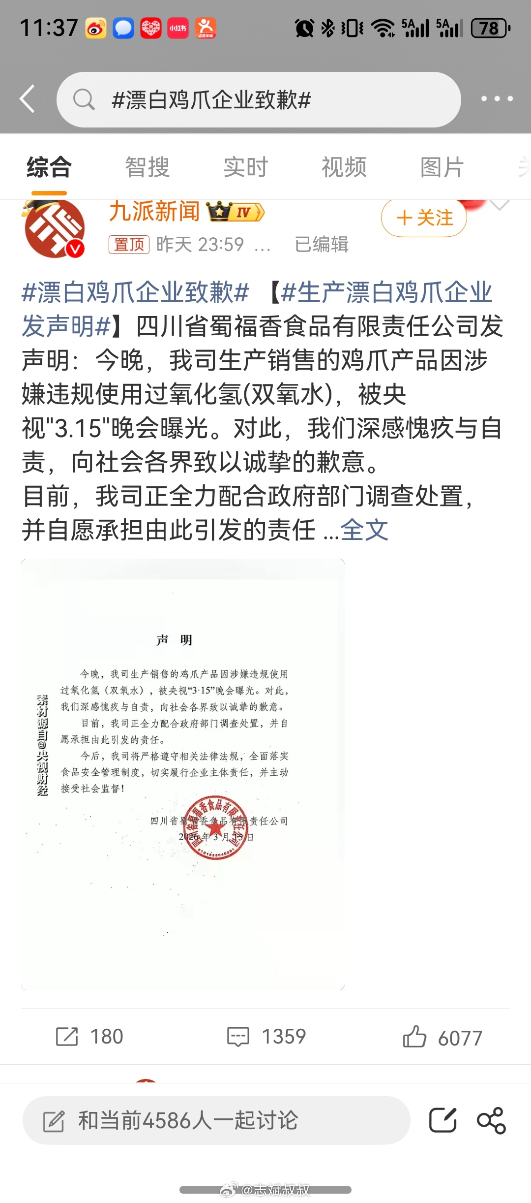 漂白鸡爪企业致歉致歉有用,要法律干嘛?幸好我真不吃这玩意儿 广州