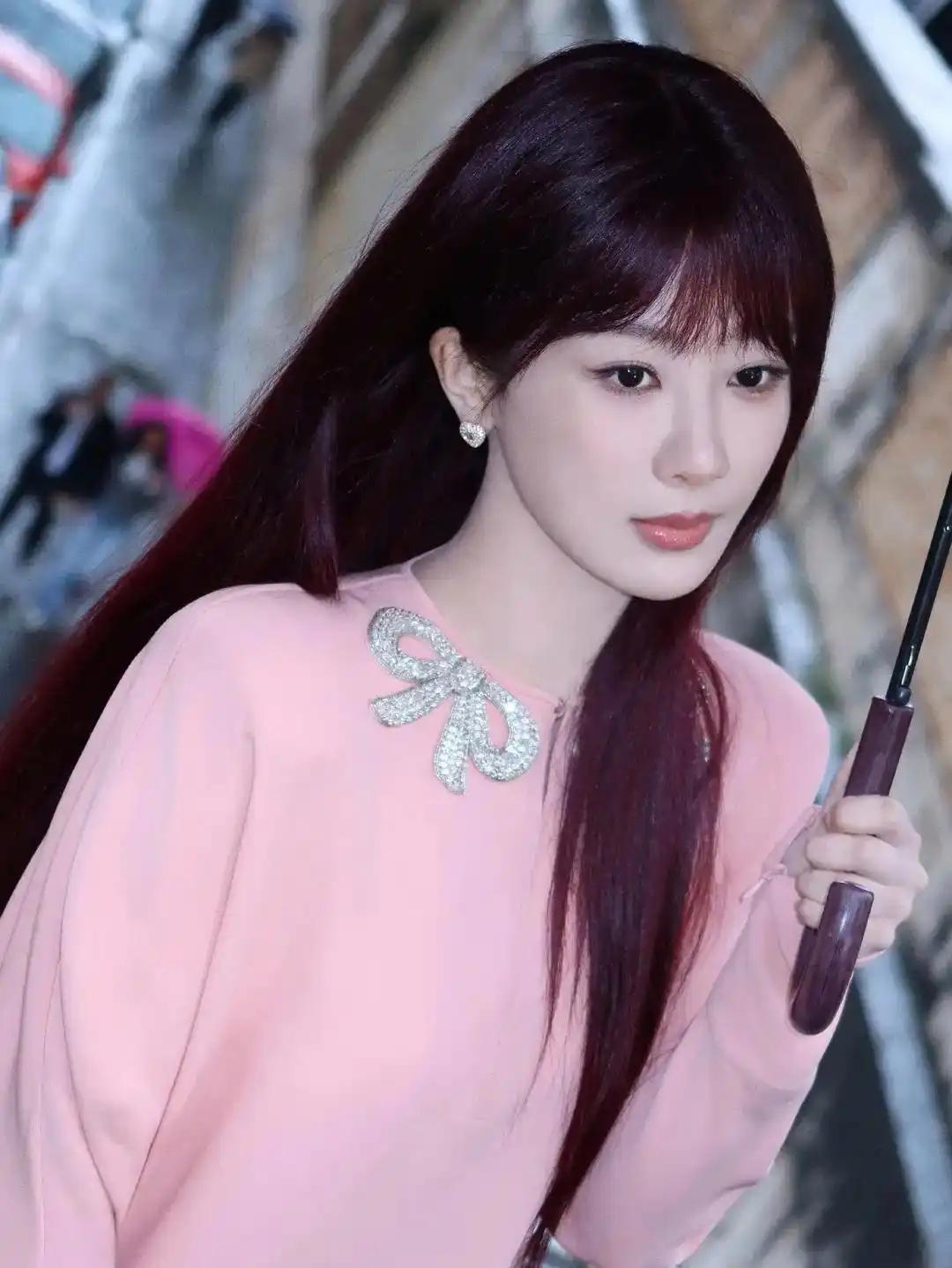 紫红长直发与粉色蕾丝裙碰撞出甜酷火花,杨紫化身雨中罗马的时尚缪斯,3斤假发下的完