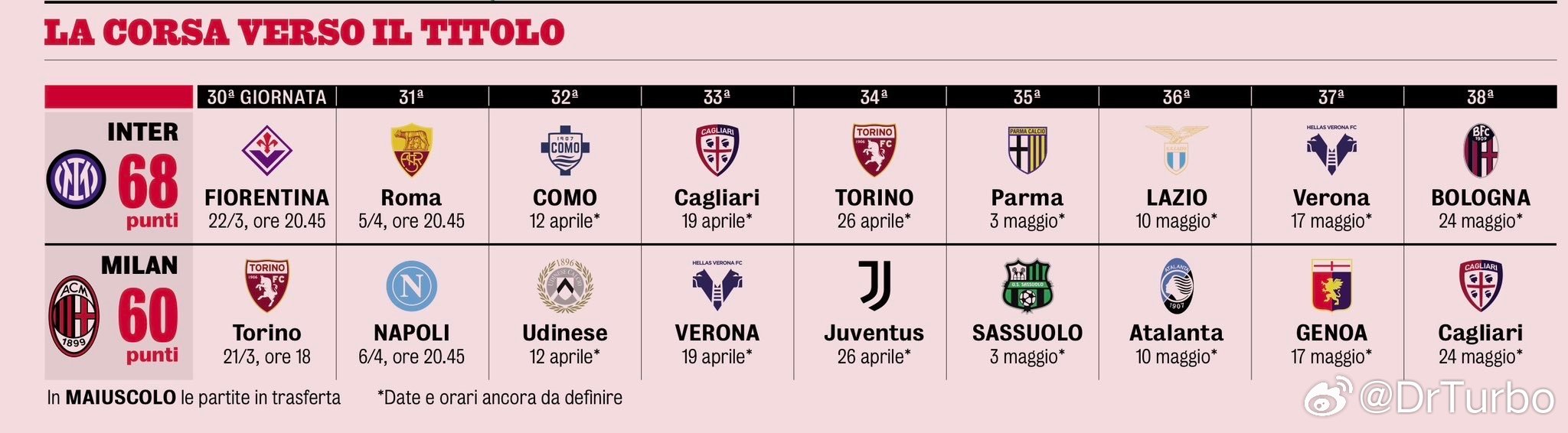 米兰体育报列出了争冠和争四的几支球队的赛程国际米兰1比1亚特兰大拉齐奥1比0ac