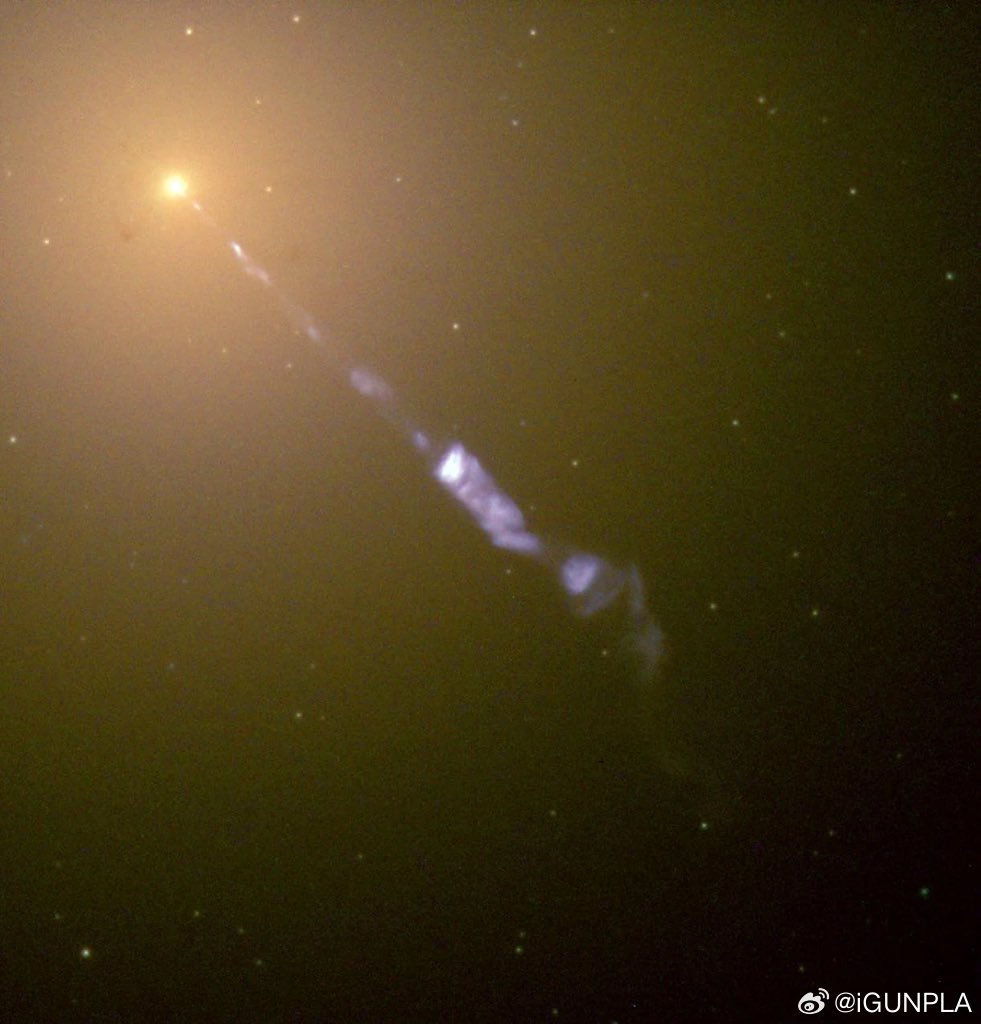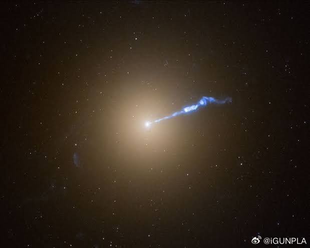 NASA捕捉到一个黑洞在吞噬星系的同时,以接近光速的速度释放出一束等离子束,其长