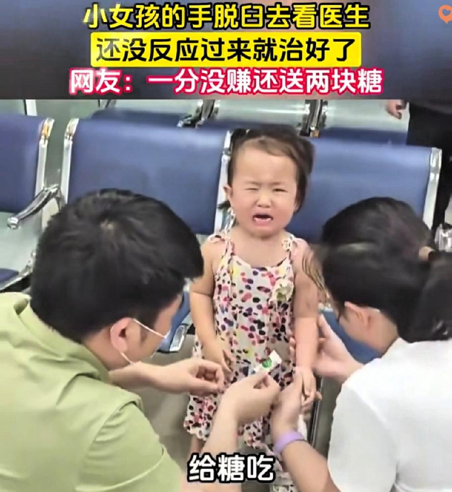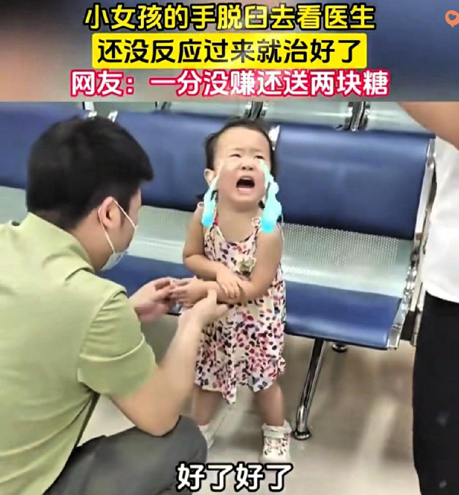 小女孩手脱臼去看医生,被猛地一掰当场爆哭,结果医生掏出两颗糖就搞定了! 妈妈本来还揪着心,看着女儿哭得上气不接下气,怀疑医生是不是没治好。 谁知道医生变魔术似的摸出糖,让小女孩用受伤的手去抓。 小家伙嘴馋,下意识一伸手就把糖攥住了,动作利索得很。 这医生也太懂娃了吧! 快速复位是专业,掏糖安抚是温柔。 有时候对付哭闹的小朋友,硬哄没用,一颗糖就是万能钥匙。 最逗的是医生一分钱没赚还倒贴,这波操作简直暖心又好笑。 其实好医生从来都不只是会看病,更会拿捏小朋友的小心思,用最轻松的方式解决问题。 你家娃受伤时,遇到过这么有意思的医生吗?