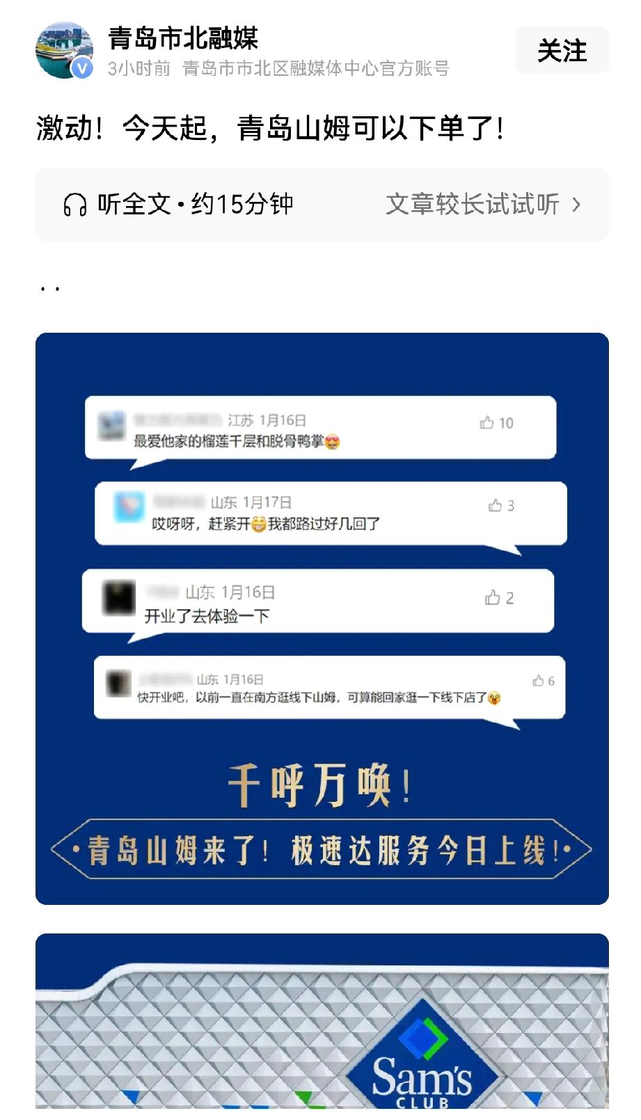 把山姆热度炒起来,现在一些网友又改口说青岛山姆因为人情世故才推迟开业的。 我还记得去年的时候,青岛山姆首先签约落地开工。那个时候一些网友在网上鼓吹山东第一家山姆落户青岛,末了还不忘指点一下济南,说济南没山姆,是“安卓城市”。 然后济南山姆也签约落地开工了,我看到有些网友甚至说出一个让人膛目结舌的理由:青岛山姆是直营的,济南山姆是合资的,青岛山姆“血统纯正”。 开一个超市都弄出血统来了,闹哪样呢? 后来济南山姆进度反超,要提前开业了,于是又出现“青岛山姆是懂人情世故的”“省里要求山姆必须先开在省会”“青岛山姆的遭遇反映了青岛在山东的待遇”。 其实没那么多事情。青岛山姆进度慢了纯属是青岛山姆所在地块,也就是滨海欢乐城这边地块有产权纠纷。当然这个纠纷现在解决了,但走法律流程需要时间的,因此耽误了一段时间。仅此而已。 但我佩服某些网友颠倒黑白的水平,济南山姆不先开业:济南营商环境落后,连首店都不考虑济南;济南山姆先开业:济南压制其他地市的象征,首店必须在济南开。反正横竖都是他们有理。 本来山姆落户山东没啥大,这群网友自己先把山姆的热度炒起来,然后却说自己不在乎山姆。 现在济青两地的山姆都快开业了,极速达也上线了。某些网友就别再折腾了,换个新鲜的吧。