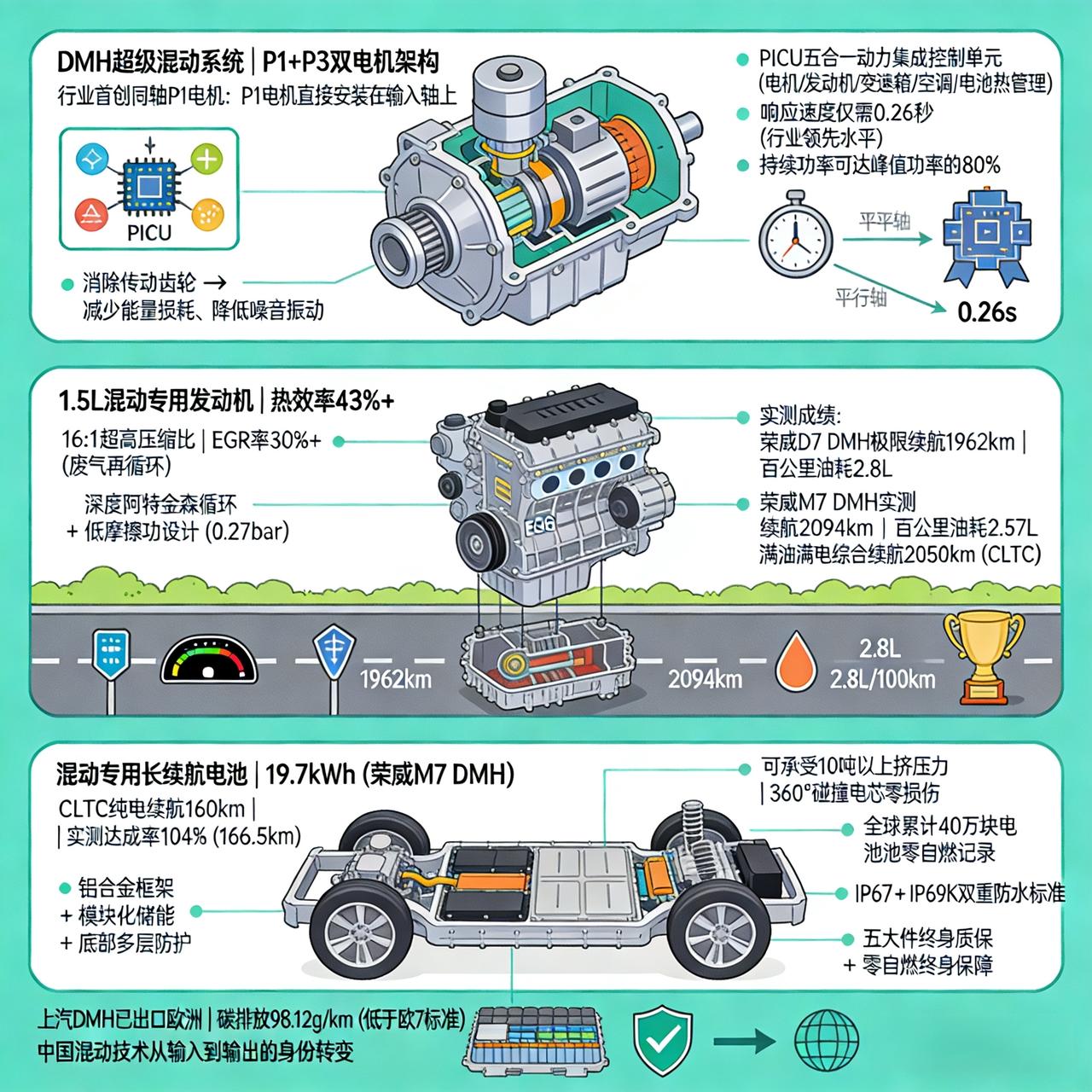上汽DMH超级混动:用P1同轴电机把平顺和效率卷出新高度,48.1%热效率发动机专啃油耗硬骨头。PICU把五个控制器捏成一个大脑,0.26秒响应时间抢的是体验主动权。荣威M7用160km纯电续航卡位政策红利,逻辑是用真实续航打透通勤场景。这套方案是上汽十二年研发攒出来的底牌,也是想在插混红海里靠硬技术撕开一道口子。 但DMH的尴尬在于技术参数没输过,销量榜没赢过。