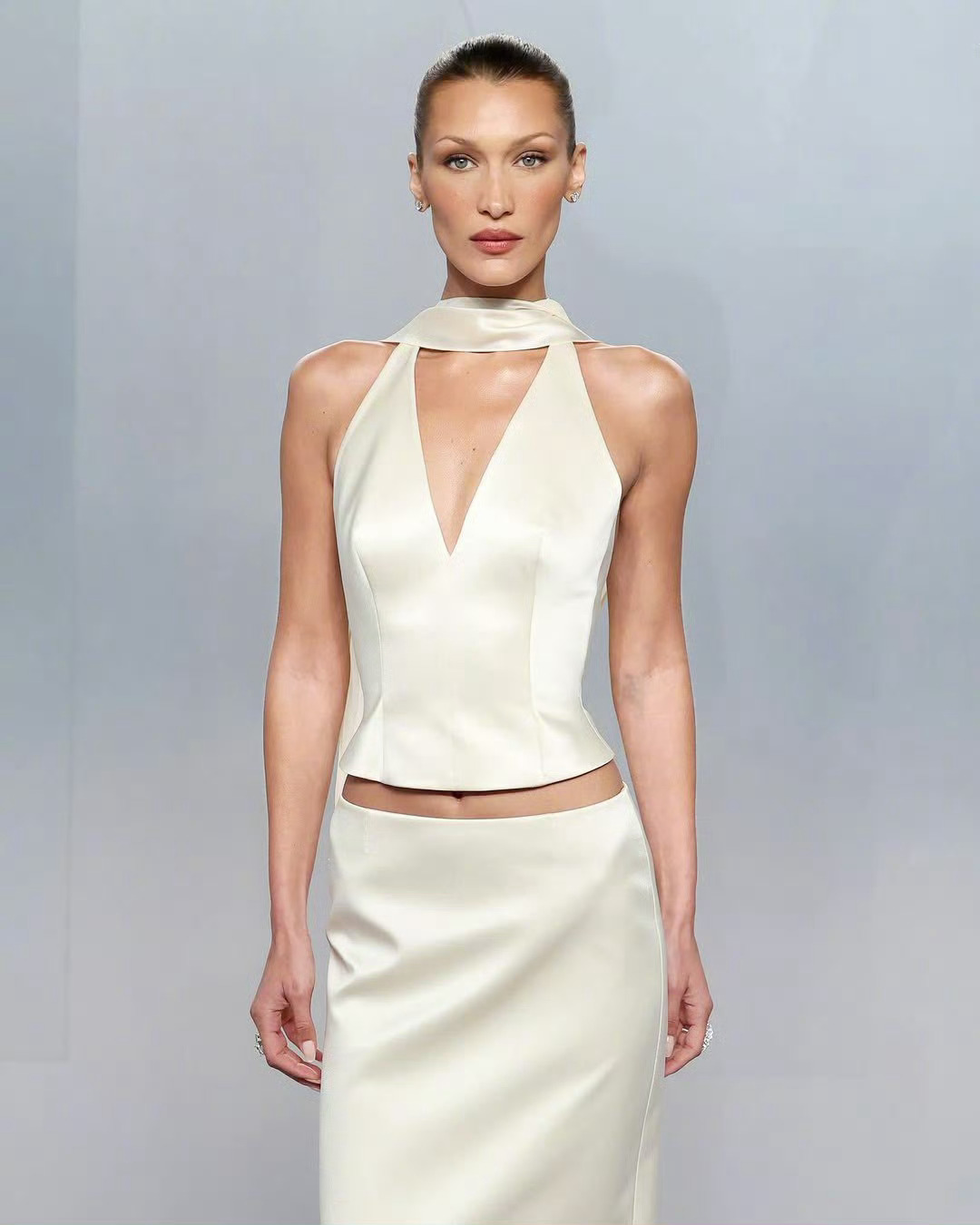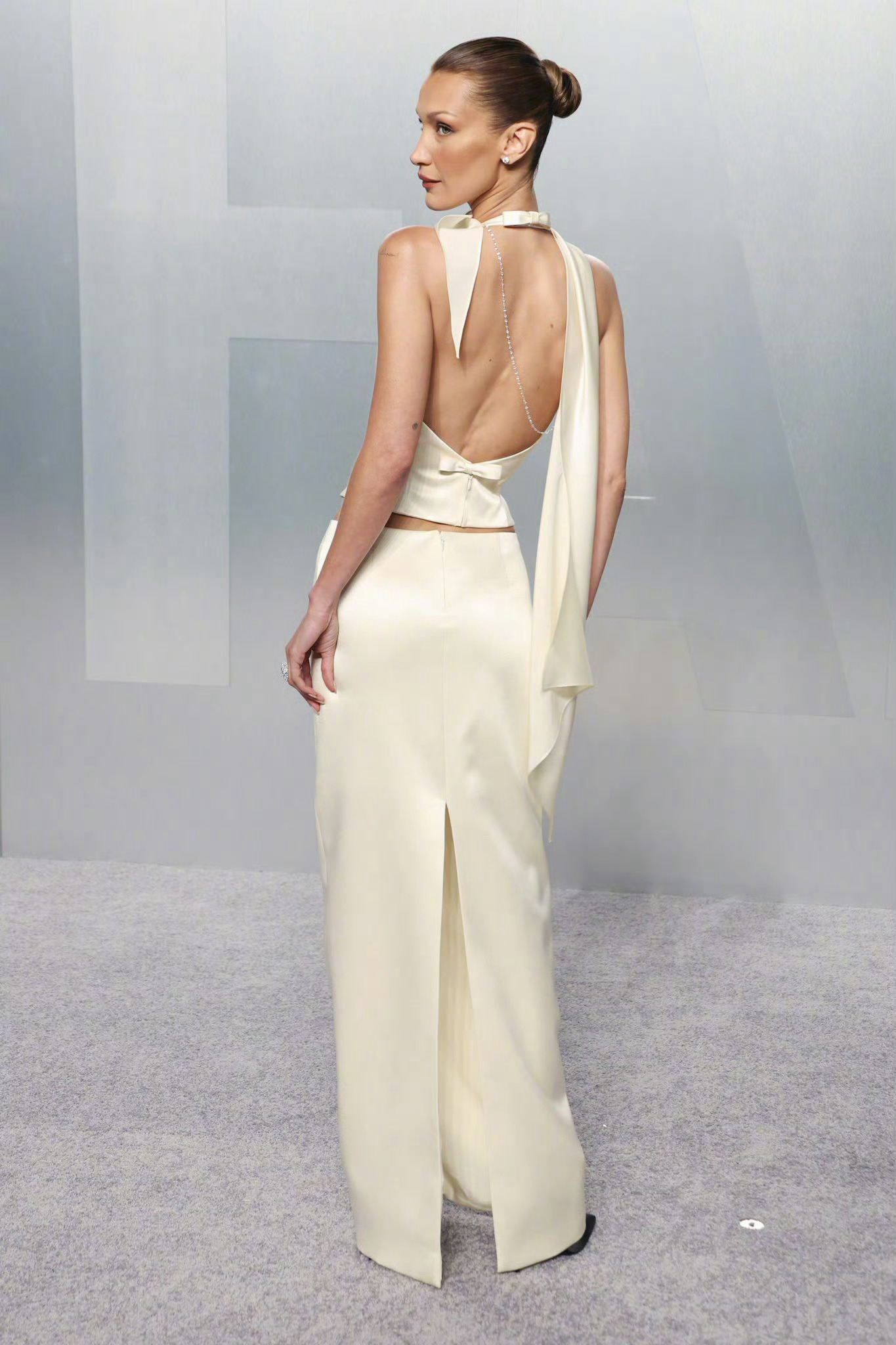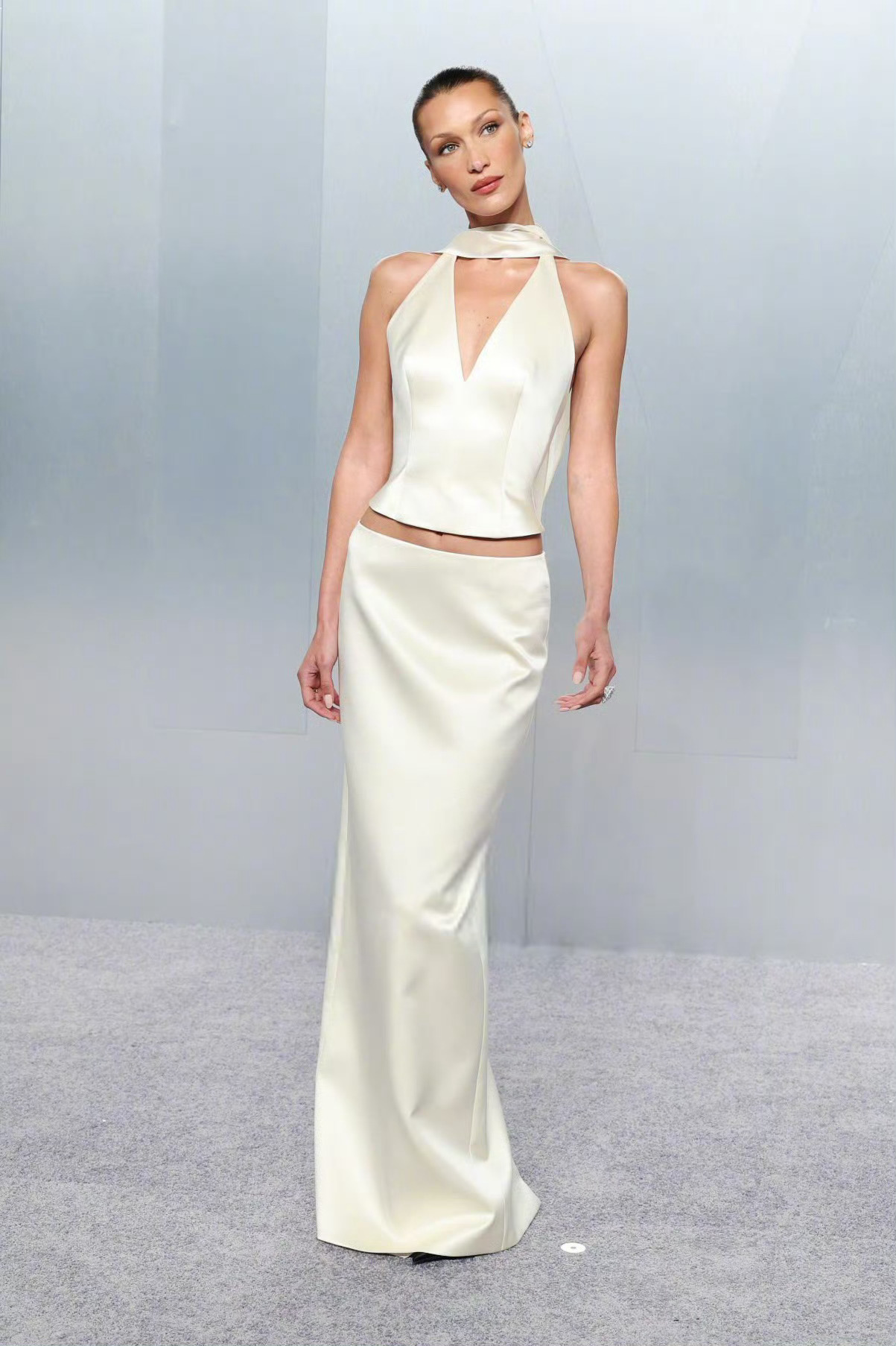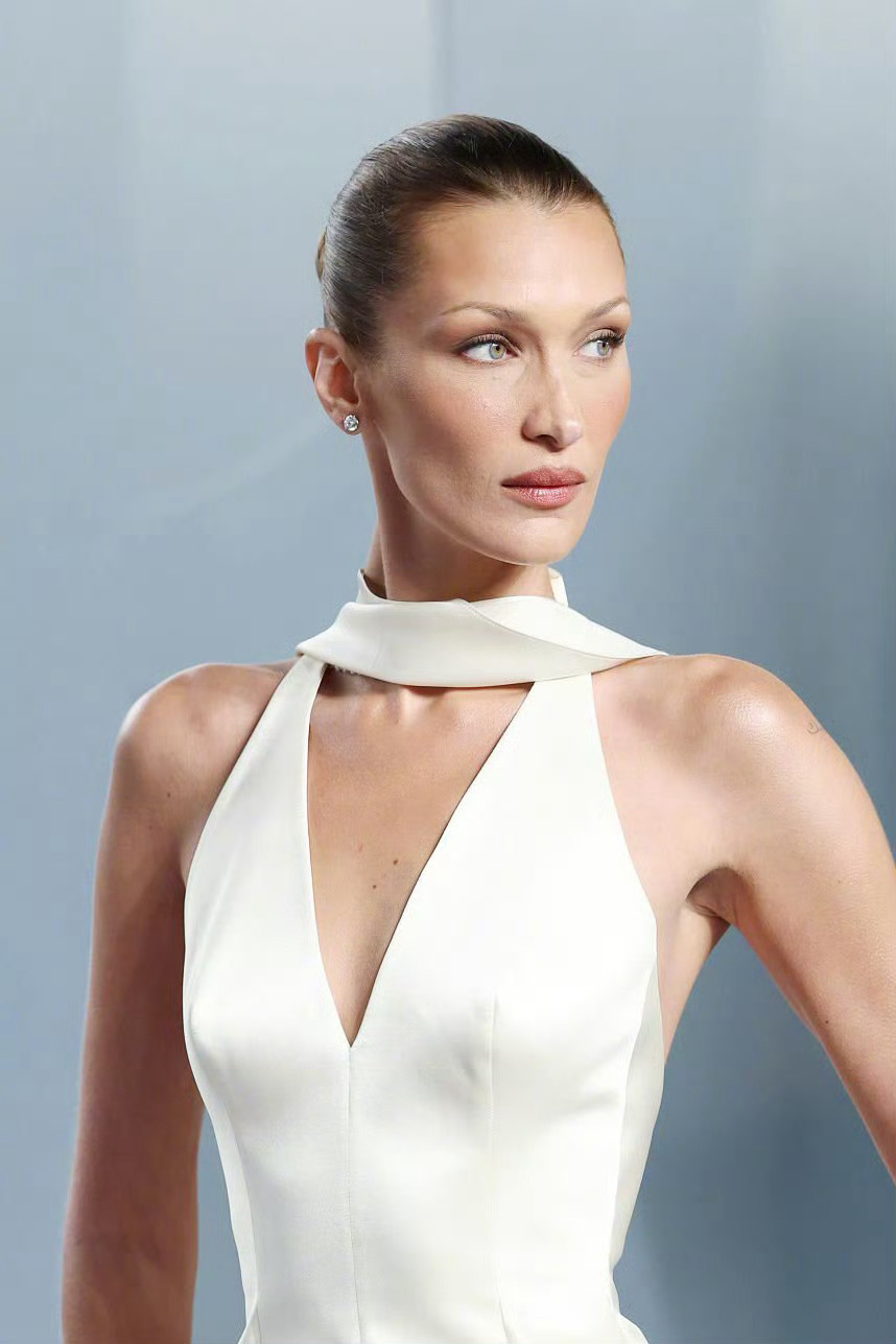 出席Vanity Fair名利场奥斯卡派对的Bella Hadid ,拿下了Prada Beauty全球品牌大使,所以一定要穿Prada了。这件米白色缎面礼服为其特别定制,剪裁漂亮的勾勒出身型线条,妆造发型优雅精致,整身造型简约大气又透着高贵感。非常成功的一身造型。米拉服饰解析 奥斯卡