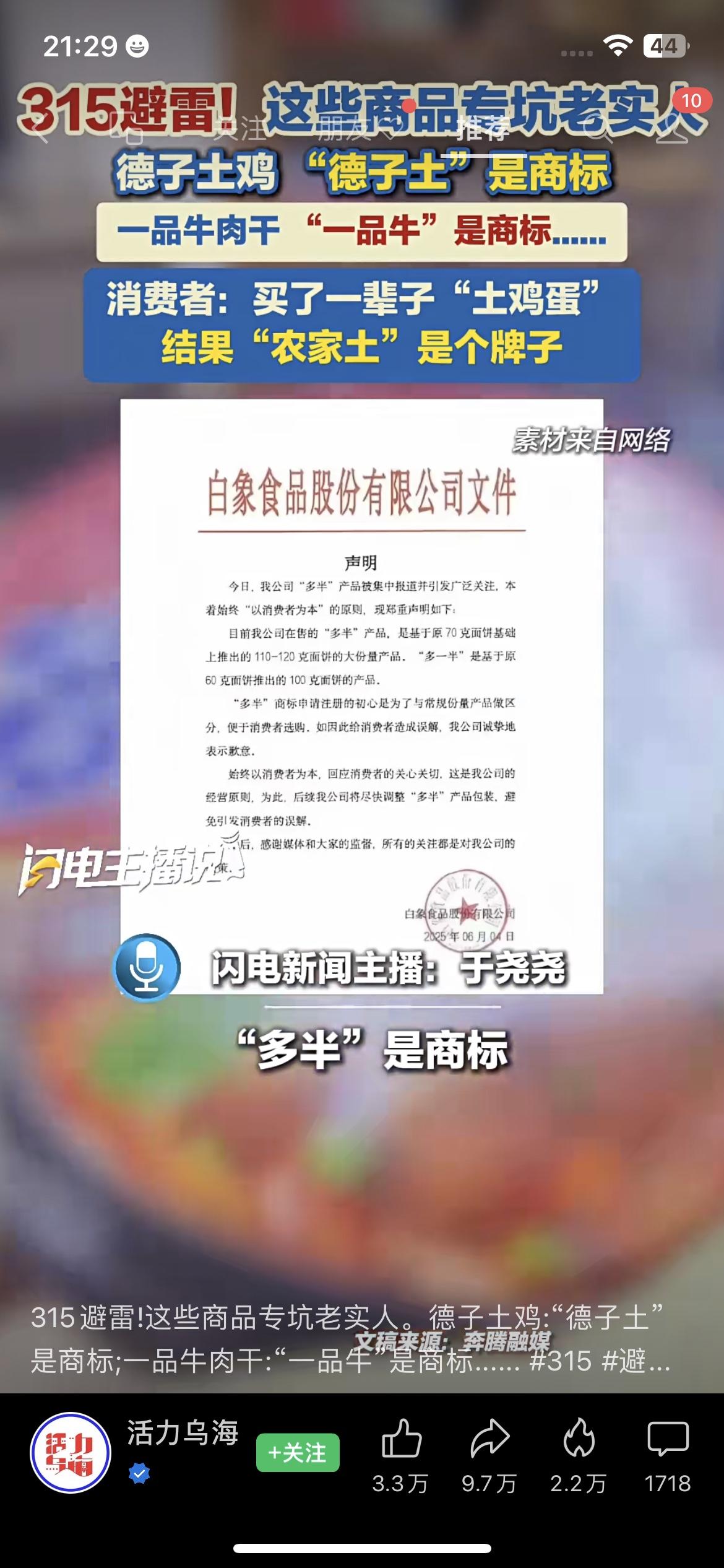 315避雷!这些商品专坑老实人,看完再也不上当。 你以为买的是“德子土鸡”,其实“德子土”是注册商标,跟“土鸡”半毛钱关系没有; 你囤的“农家土鸡蛋”,“农家土”也是个牌子,根本不是农户散养; 还有“一品牛肉干”里的“一品牛”、“安踏断码”、“千禾0”、白象“多半”,全是商标套路! 不少人买了半辈子,直到今天才发现自己被文字游戏骗了。 这些商家把商标当“天然、正宗”的幌子,专门收割想省钱、想尝鲜的普通人。 315避雷 消费陷阱 商标套路 民生热点 👉 你买过这种“文字游戏”商品吗?评论区聊聊踩过的坑!