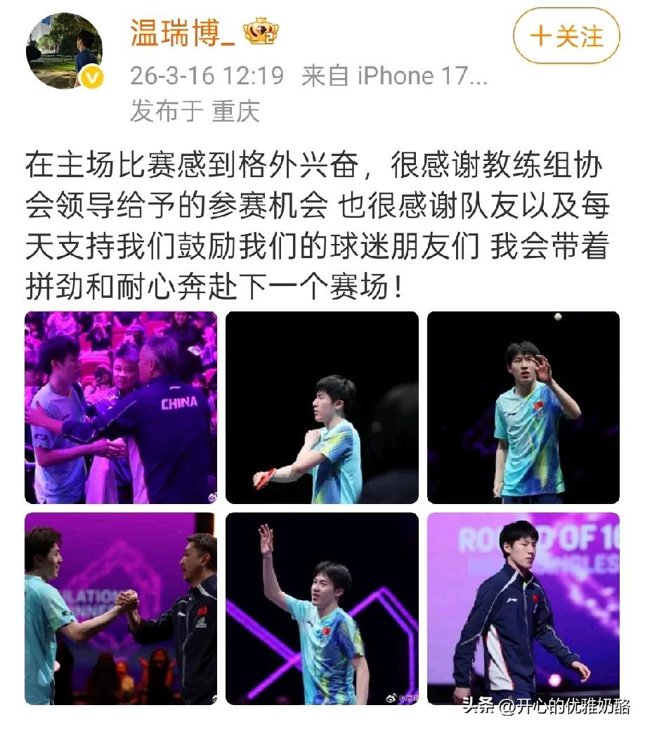 温瑞博感谢了所有人,要带着拼劲和耐心奔赴下一个赛场。 其实最应该感谢他,在上半区失守,一个小将守住下半区进决赛。 小温是重庆冠军赛一匹黑马,不仅向所有人证明实力,也展示了自己的个人魅力。 温瑞博说此时不搏何时搏,他说到也做到了,在赛场上敢于亮剑,不惧和高手过招,一个小将能坚定守住半区,打出21-19的爆分 ,心理素质绝对过硬。 小温总结的非常好,拼劲和耐心一个都不能少。 加油温瑞博,下一个赛场见。 图片来自网络侵权可删。
