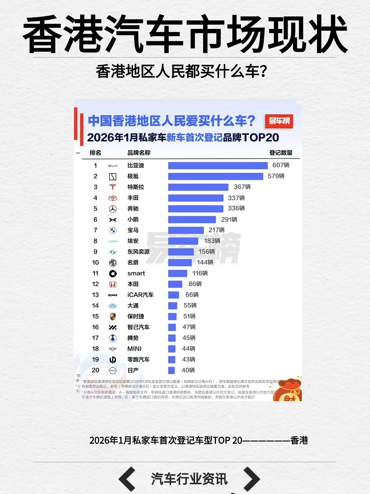 凭硬核实力改写市场格局,中国品牌的新能源汽车在其他市场基本都是降维打击。今年1月,以比亚迪为首的国产品牌在香港表现依旧不错,希望能继续保持下去。