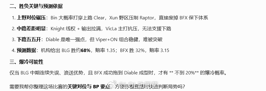 看看豆包怎么说先锋赛?xun说过打BFX大概率会3比1,刚刚问了问豆包,豆包告诉