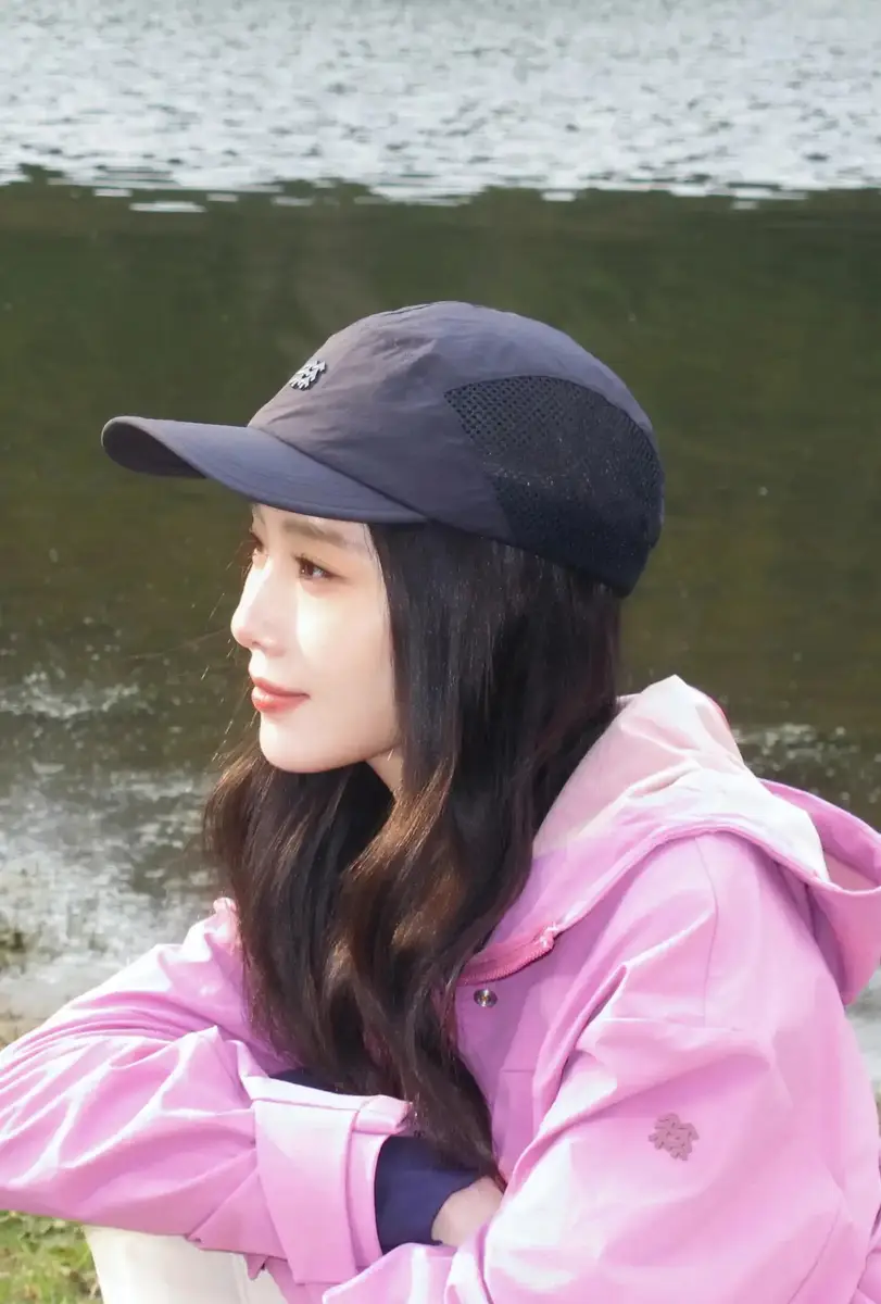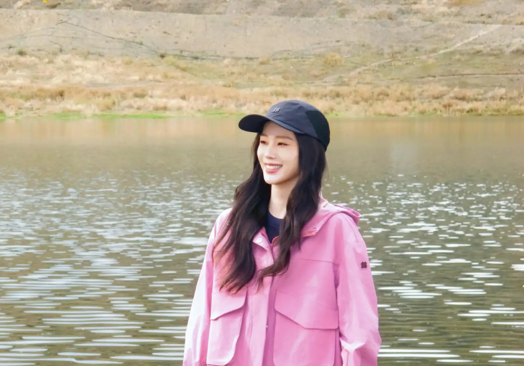刘诗诗穿粉冲锋衣搭棒球帽元气松弛 湖畔露营惬意又自在