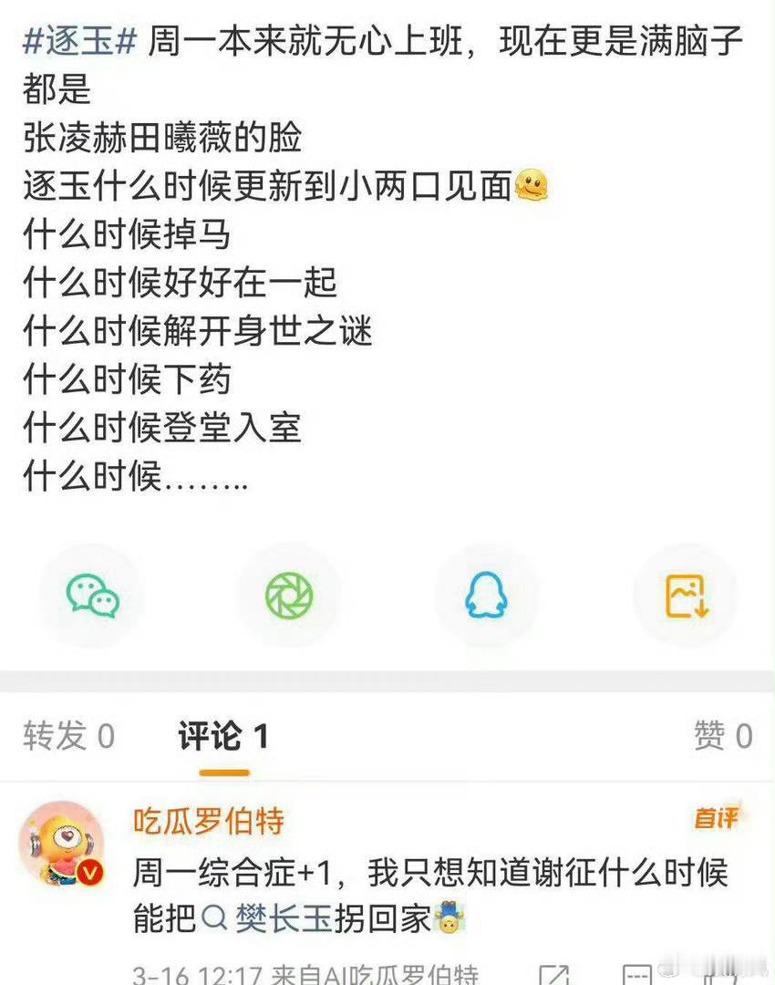 为逐玉硬撑周一打工人周一全靠《逐玉》续命!疲惫不堪的周一,就等着谢征和樊长玉的重