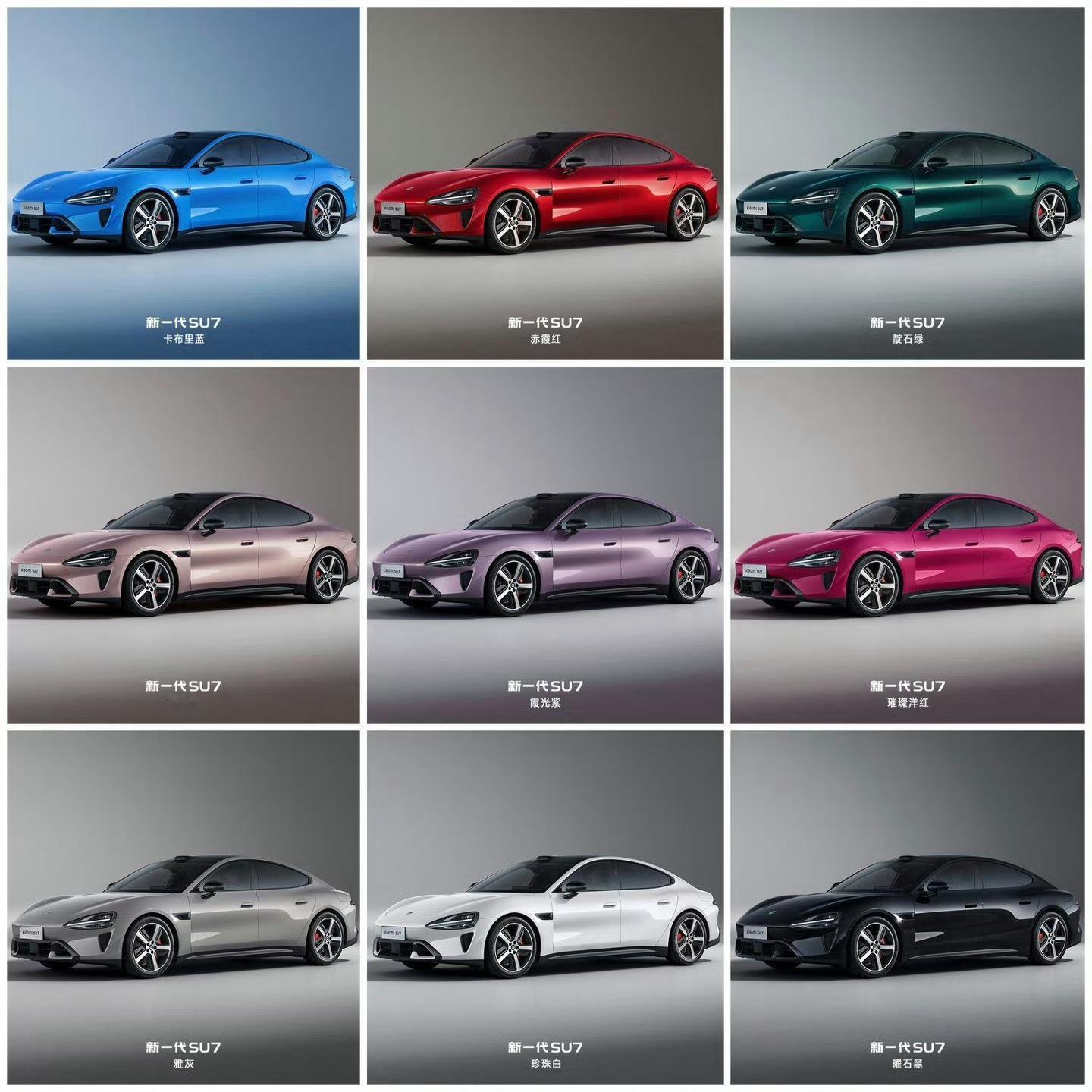 卡布里蓝特别版还有专属轮毂和暗黑内饰可选,真的帅,小米汽车在设计和配色上是真的有东西,其他8个颜色也好看,赤霞红也是今年会热卖的新颜色,我试驾的就是这个颜色,男女老少皆宜,中国人喜欢红色,还有一个新颜色绿色我没见过,其他6个颜色都是第一代SU7以及YU7卖的很好的颜色,都给保留了,那我相信还是新款的三个颜色会卖的更好,毕竟买新车的用户还是想让大家知道买的是新款是不是。