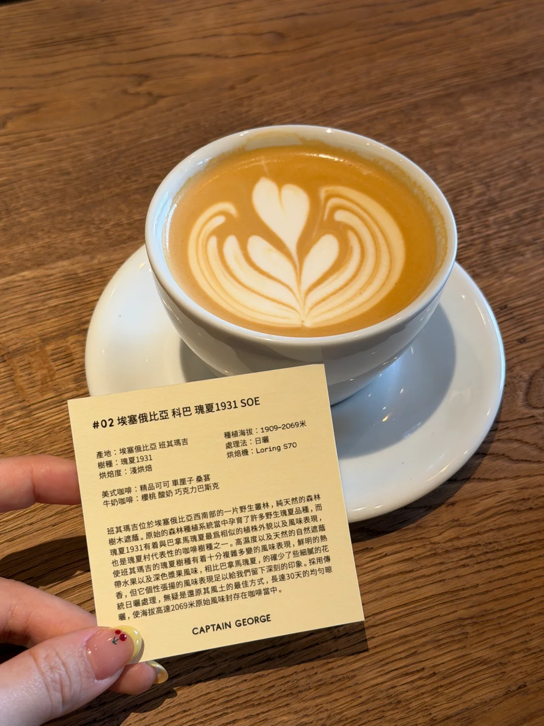 也是喝上了没有排队的冠军咖啡 「埃塞俄比亚 oma金标瑰夏1931」 奶咖香浓柔和 特调草莓味酸甜适中 一口入魂的感觉~ 整体的木质感装修也是很有调调