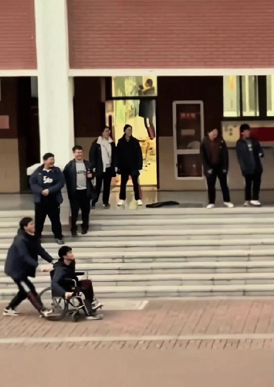 上人民日报了,安徽,一高中老师看见学生们聚在走廊往下望,还不时传来喝彩声,她跟着探头望去,不料操场上一男生竟推着坐轮椅的同学打羽毛球,俩人一攻一推配合得格外默契,老师瞬间被这份纯粹的同窗情深深打动。 安徽一所高中正是学校的课余时间,校园里到处都是学生们活泼的身影,有的在操场跑步,有的在树下聊天,热闹又充满青春气息。这名老师原本打算去办公室备课,路过教学楼走廊时,被栏杆边的人群和喝彩声吸引住了。 学生们围得密密麻麻,一个个踮着脚尖,目光紧紧盯着楼下的操场,脸上满是兴奋,时不时发出阵阵欢呼,语气里满是赞叹。 老师心里满是好奇,不知道是什么热闹场面,能让这么多学生驻足围观、频频喝彩,于是停下脚步,轻轻拨开身边的学生,顺着大家的目光往下望去。 这一眼,让她瞬间定格在原地,心底涌起一股暖流,眼眶也悄悄泛红。只见楼下的操场上,一名男生正推着一辆轮椅,轮椅上坐着另一名同学,两人正配合着打羽毛球,没有复杂的技巧,没有激烈的比拼,却有着旁人无法替代的默契。 轮椅上的同学,因为身体原因无法站立,只能坐在轮椅上,手里紧紧攥着羽毛球拍,眼神专注地盯着飞来的羽毛球,每当羽毛球靠近,他便轻轻挥拍,稳稳将球打回去,动作虽不算灵活,却格外认真。 推轮椅的男生,始终站在轮椅身后,身体微微前倾,目光紧紧跟着羽毛球的轨迹,小心翼翼地推着轮椅移动,调整着最合适的位置,方便轮椅上的同学击球。 他的动作轻柔又熟练,没有丝毫急躁,每当轮椅上的同学成功击球,他都会悄悄放慢速度,眼底藏着不易察觉的笑意。 两人一攻一推,配合得格外默契。羽毛球在空中来回穿梭,推轮椅的男生精准把控方向,轮椅上的同学从容挥拍反击,没有一次失误,没有一句抱怨,只有彼此的默契配合和发自内心的快乐。周围的喝彩声,正是同学们为他们加油鼓劲,为这份真挚的情谊欢呼。 老师静静站在走廊上,看着操场上的一幕,久久没有挪动脚步。她能看出,轮椅上的同学,平日里或许因为身体原因,很少能像其他同学一样自由运动,而推轮椅的男生,没有丝毫嫌弃,默默陪伴在身边,用自己的方式,圆了同学打羽毛球的心愿。 老师被这一幕深深打动,悄悄拿出手机,将这个温暖的瞬间记录了下来,原本只是想随手留存这份美好,没想到,视频发布到网上后,迅速走红,短短时间内收获了无数点赞和转发,甚至被人民日报转发报道,让更多人看到了这份纯粹的同窗情。 视频中,阳光洒在两个少年身上,轮椅缓缓移动,羽毛球来回飞舞,周围是同学们的喝彩声,画面温暖又治愈。没有轰轰烈烈的举动,没有华丽的辞藻,只是两个少年之间最简单的陪伴,最默契的配合,却藏着青春里最动人的善意。 后来,老师在回忆起当时的场景时,依旧满是动容。她说,从教多年,见过太多学生之间的情谊,却从未像这一幕这样触动她,这份情谊,不掺任何杂质,纯粹又热烈,是青春最美好的模样,也是校园里最温暖的风景。 轮椅上的少年,没有因为身体的不便而消沉,依旧保持着对运动的热爱,乐观又坚强;推轮椅的少年,用默默的陪伴,温暖着身边的同学,用行动诠释着同窗情的真谛。他们的举动,不仅温暖了彼此,也治愈了无数网友,让大家看到了青春里最动人的模样。 如今,这段暖心的视频依旧在网上流传,越来越多的人被这份纯粹的同窗情打动,有人说,这才是青春该有的样子,有陪伴,有善意,有温暖;也有人感慨,最珍贵的情谊,从来都不是锦上添花,而是雪中送炭,是默默陪伴。 此事登上人民日报后,也引发了更多人的关注和思考,大家纷纷为两个少年点赞,为这份纯粹的同窗情点赞,也希望这样的温暖,能在更多校园里传递下去,让每一份善意,都能被看见、被珍惜。 对此,你们有什么看法,欢迎评论留言~