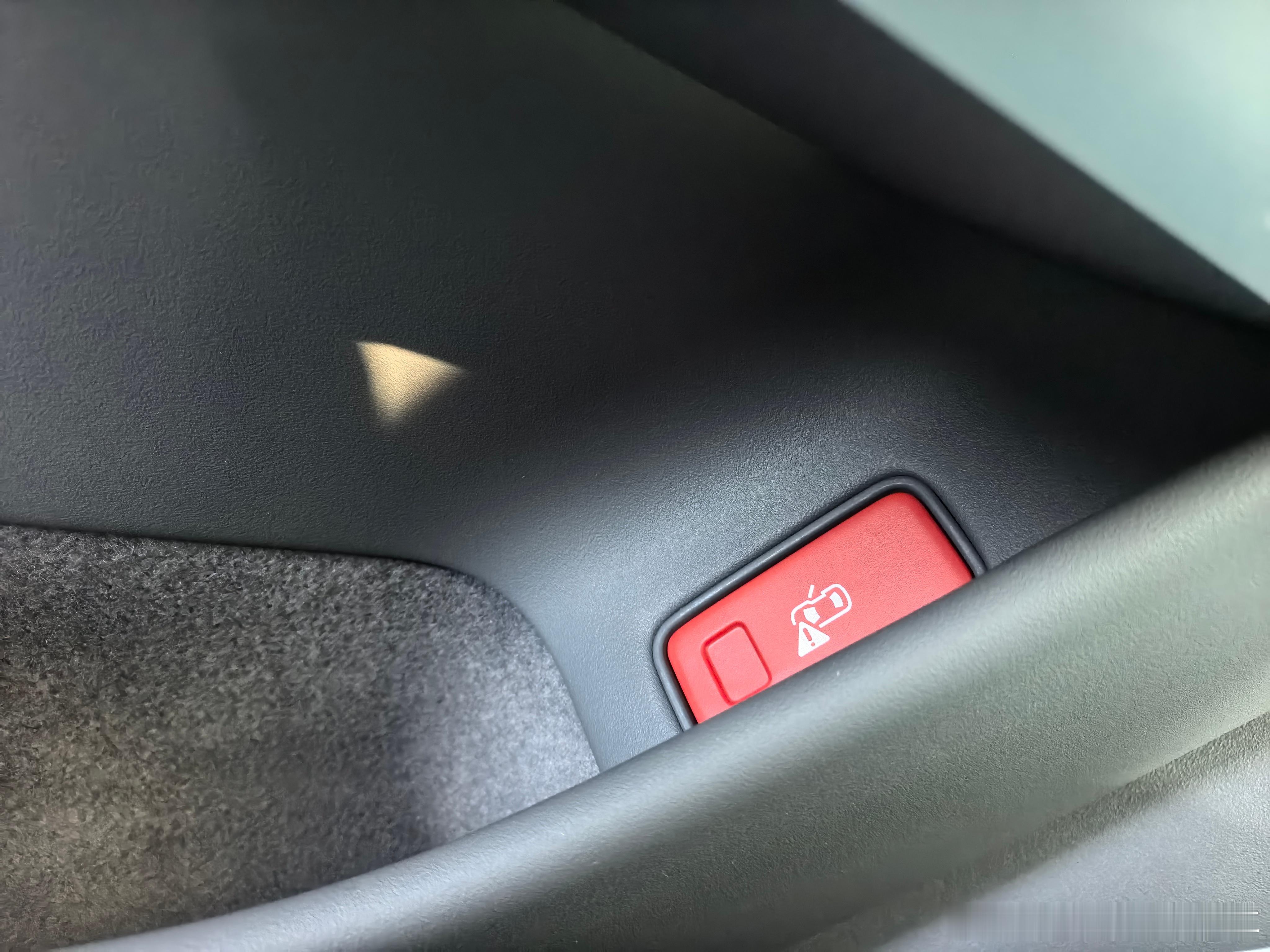 与众08的四个车门都有应急机械门把手,并且是醒目的红色,一眼就能看到。这个安全设计必须点赞。