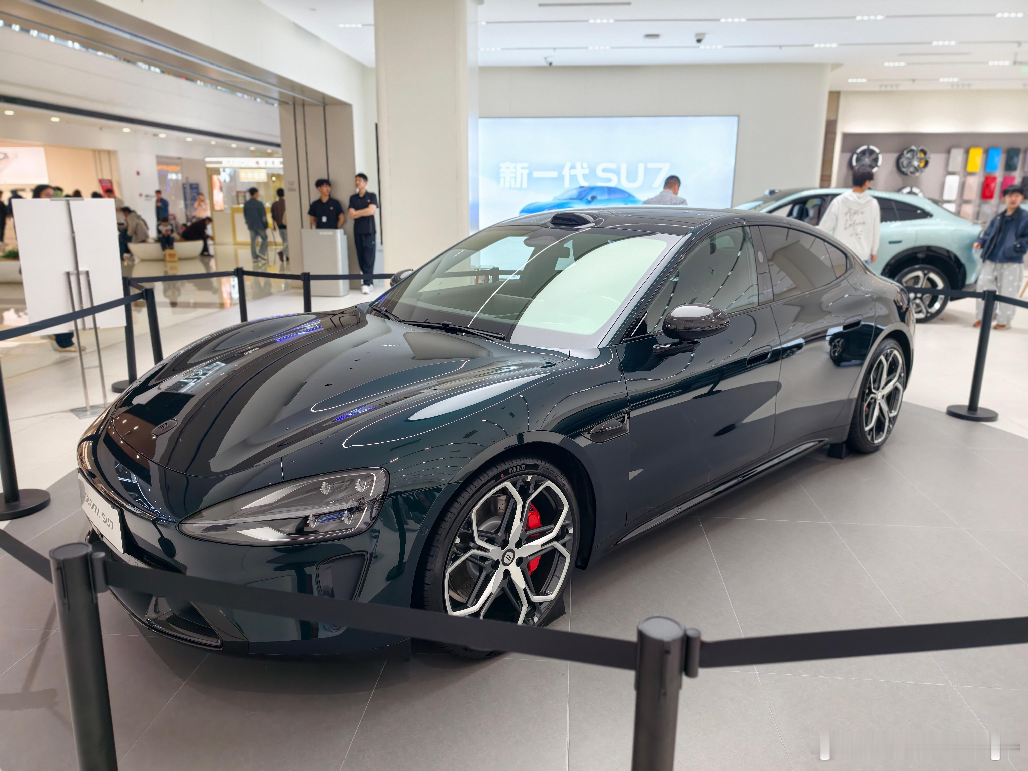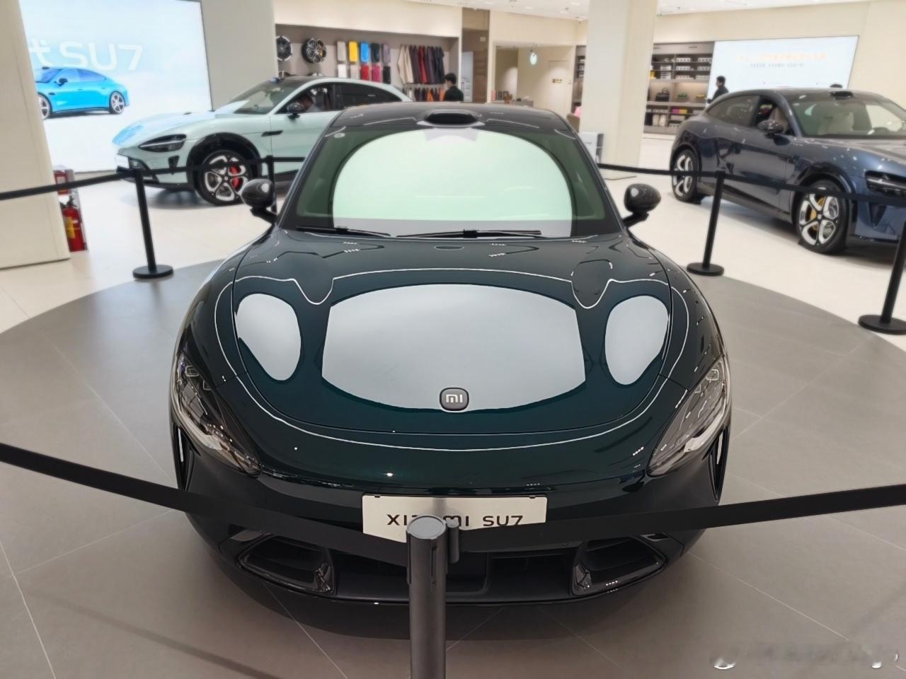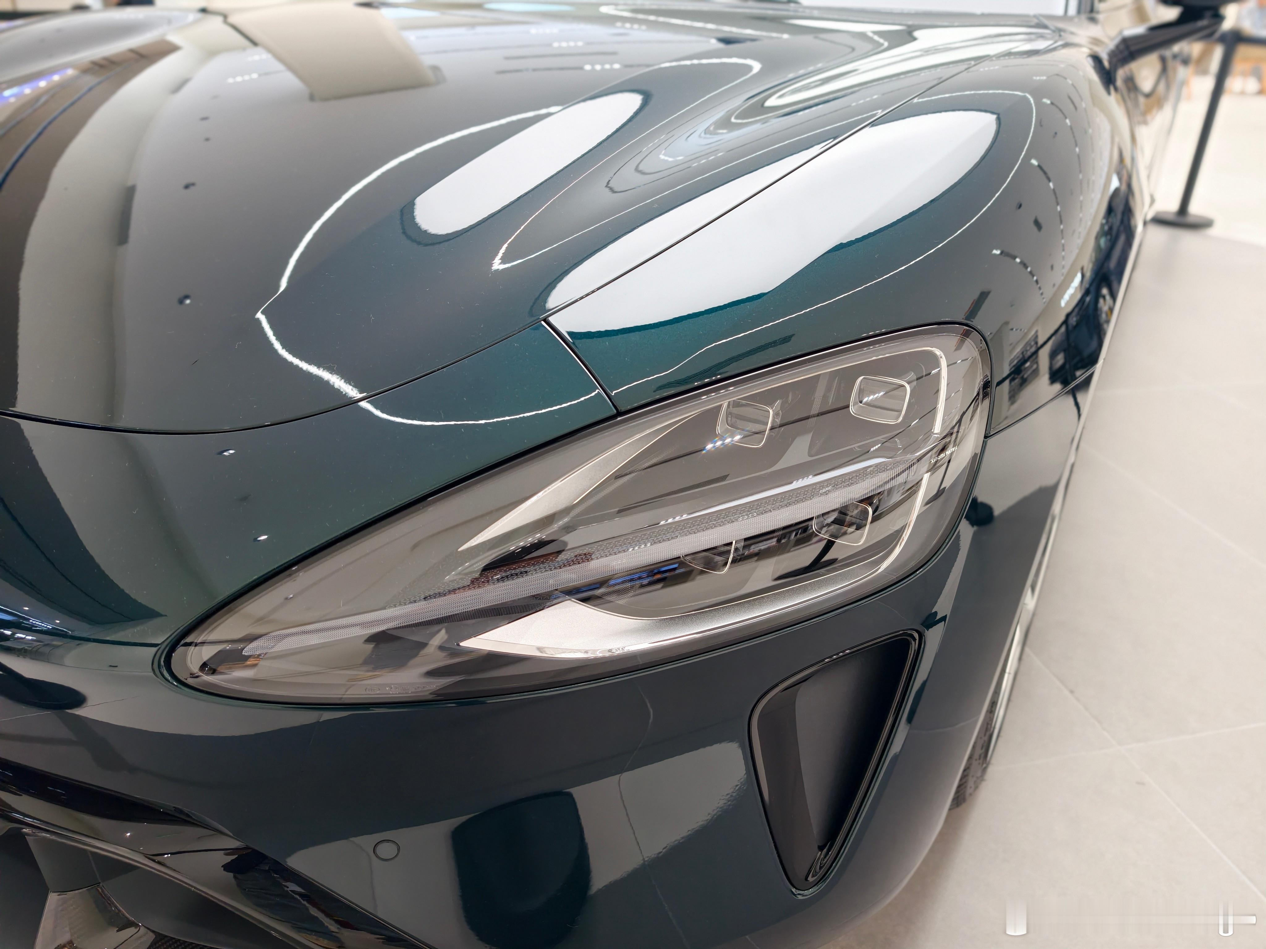 探店一下全新小米 SU7,这台展车是靛石绿,全新 SU7 的新颜色,非常好看,建