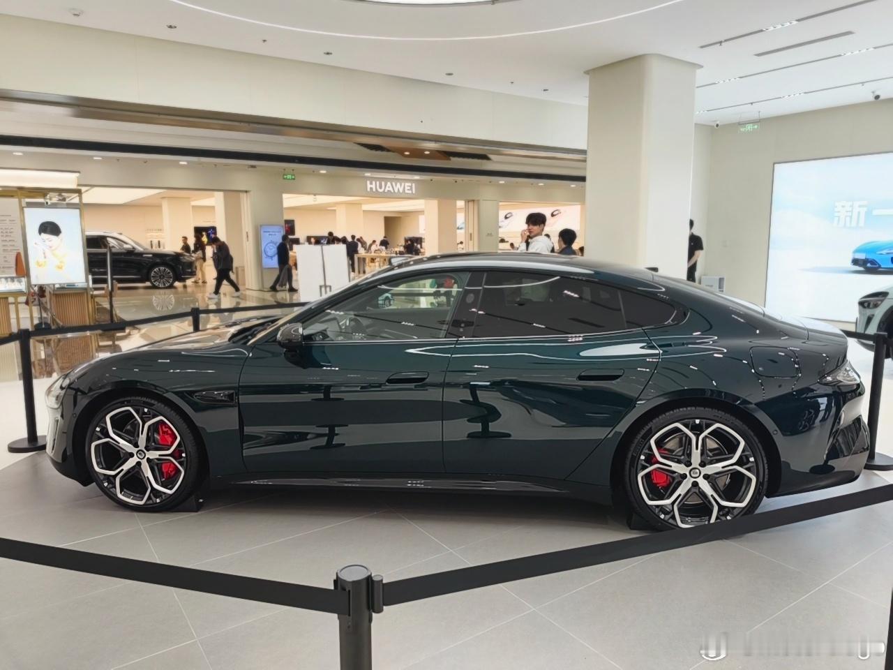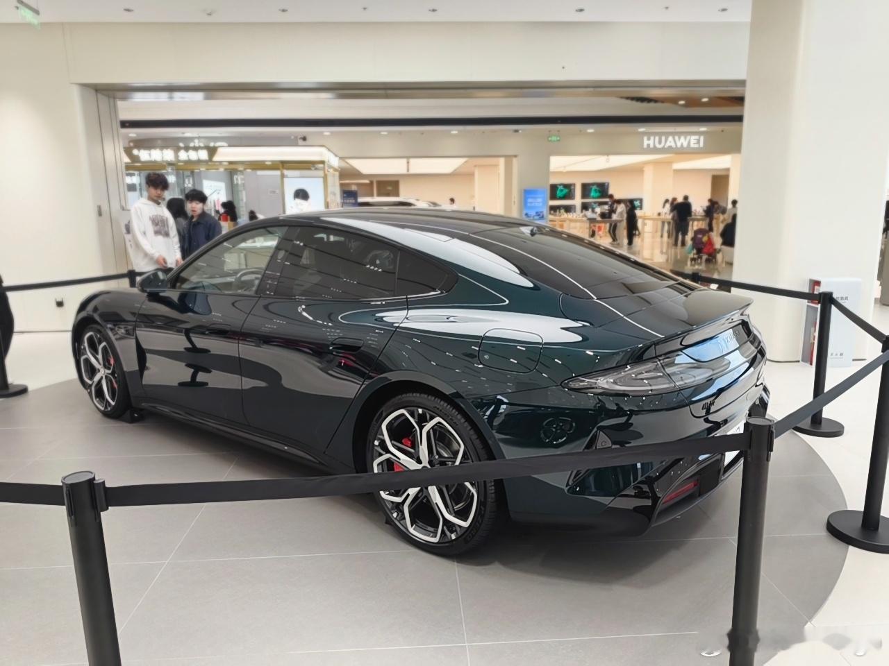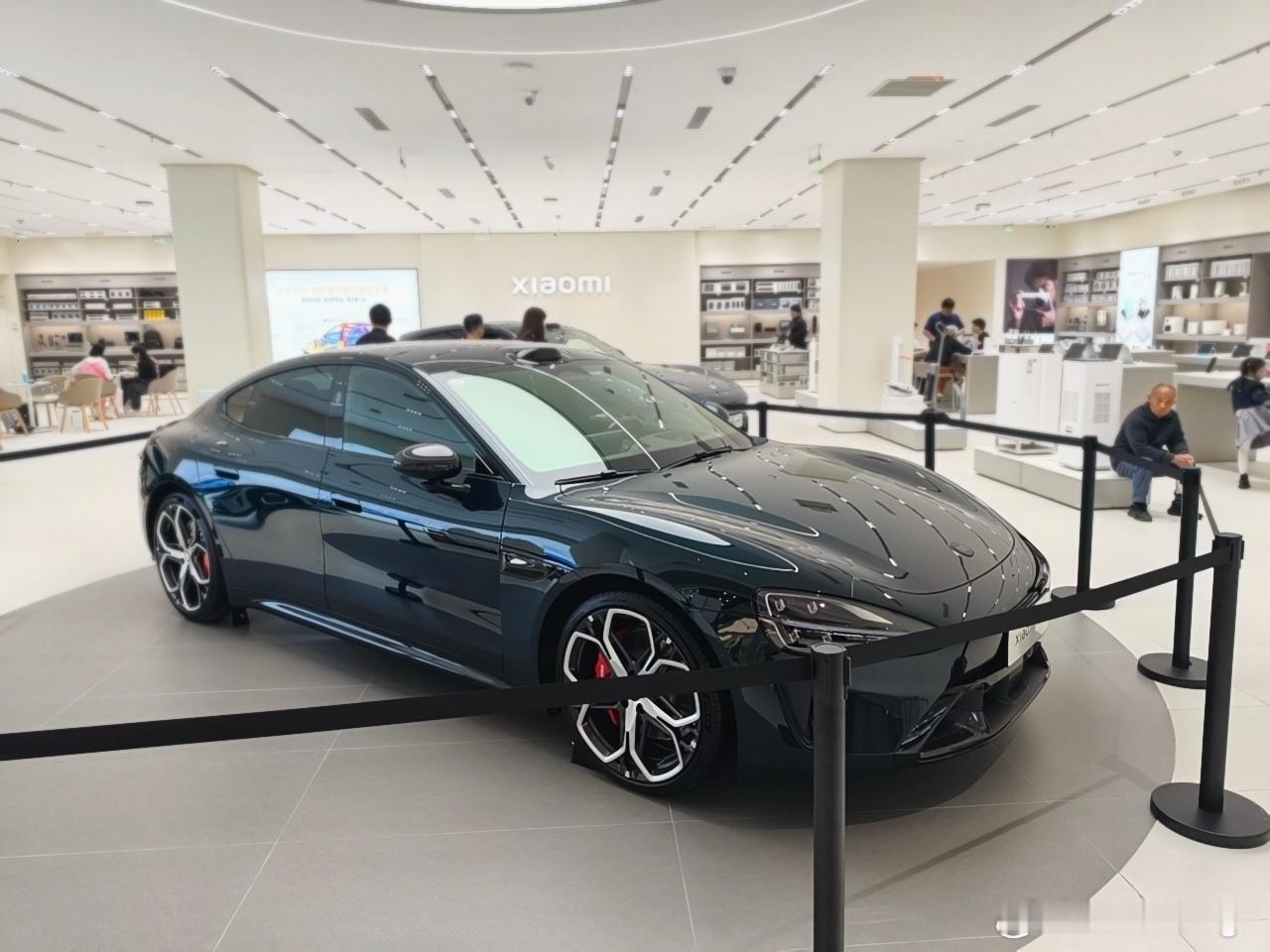 探店一下全新小米 SU7,这台展车是靛石绿,全新 SU7 的新颜色,非常好看,建