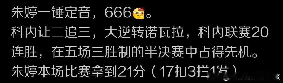 科内利亚诺和诺瓦拉之间的意甲女排首场半决赛,已经过去将近一天的时间了,但是对于这场比赛的讨论声还远未结束,朱婷在这场比赛当中展现出来的竞争力和打困难仗的能力,也让科内利亚诺在前面0比2大比分落后的情况下,很好的掌控了后面三局的局面,实现了3:2的逆转胜出。朱婷在多轮比赛贡献稳定发挥的情况下,也终于在此役凭借攻防两端的发挥,替代哈克成为了此役当中的MVP获得者。双方五局具体比分是23:25、23:25、25:15、25:23和15:12。 而朱婷在此役当中的个人数据也定格在32扣17中,另有3次拦网和1次发球直接得分,她是拿到全队第二高的21分。不过她在场上协同作战能力,特别是一传保障,还有整体进攻环节的综合实力,成为科内利亚诺逆转对手的一大关键。 毕竟球队近期连续频繁作战,而且是疲劳作战,比赛场次之间的时间间隔特别短。这无疑对球队发挥自身的最佳状态带来了更大的困难。再加上两支球队实力本就在伯仲之间,所以科内利亚诺想在客场胜出难度确实不小。 而在这场水平相当的比拼当中,科内也是一上来就连输两局,只不过两局都是关键分失利,比分也都是23:25,这也从一个侧面说明,球队如果处理好了一些关键环节,是有胜出机会的。 而这种信心上没有被打垮的状态也让科内全队在第三局迎来了反败为胜的机会。最终球队是在朱婷和哈克的带领下连扳三城,并在决胜局以15:12胜出,确保球队实现3:2的大逆转。在双方需要打多轮正面比拼的情况下,占据了晋级决赛的先机。再加上此役是客场取胜,对球队的帮助意义就更大一些。 另外值得一提的是,此役除了朱婷拿到21分,她的三位队友哈克,塞拉还有法尔也分别拿到25分、14分和10分。而对手阵中的实力派攻手托洛克再次拿到全场最高的34分,只是可惜她身边的队友不够给力,也让他们功亏一篑,不得不接受一场五局苦战后失利的结局。最后,让我们再次恭喜朱婷,她在这场比赛展现出来的那种综合作战能力也再次证明了即使成为年龄30加的老将,而且手腕伤病始终没有百分百康复,但是对于朱婷来说,阅读比赛能力和打困难仗能力方面的全面提升,也让她即使进入职业生涯末期,甚至体能状态和身体状态都有所下滑,却依然可以凭借比赛经验和关键分能力以及场上阅读比赛的能力,成为球队取胜甚至是逆转取胜的关键。 让我们再次恭喜朱婷!也恭喜科内利亚诺全队!并期待着他们在这轮意甲半决赛当中能成功胜出,继续争取闯进决赛,力争冠军。