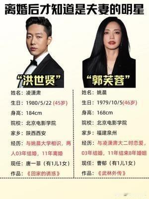 姚晨两段婚姻结果很不一样 不是说都离婚了,而是她和凌潇肃从校园到婚姻再到朋友,他俩只有共同逝去的青春,姚晨和凌潇肃离的轰轰烈烈,凌潇肃离婚后事业陷入低谷。 姚晨和曹郁虽然也离婚了,但是人家是离婚几年了才公开,是实在瞒不住了,同样是离婚人家曹郁好歹得到了一儿一女,反观凌潇肃真的是青春错付,啥都不剩了,至今也没有听到过他结婚生孩子啥的。 所以说曹郁和凌潇肃算不算事同伞不同柄 同人不同命。