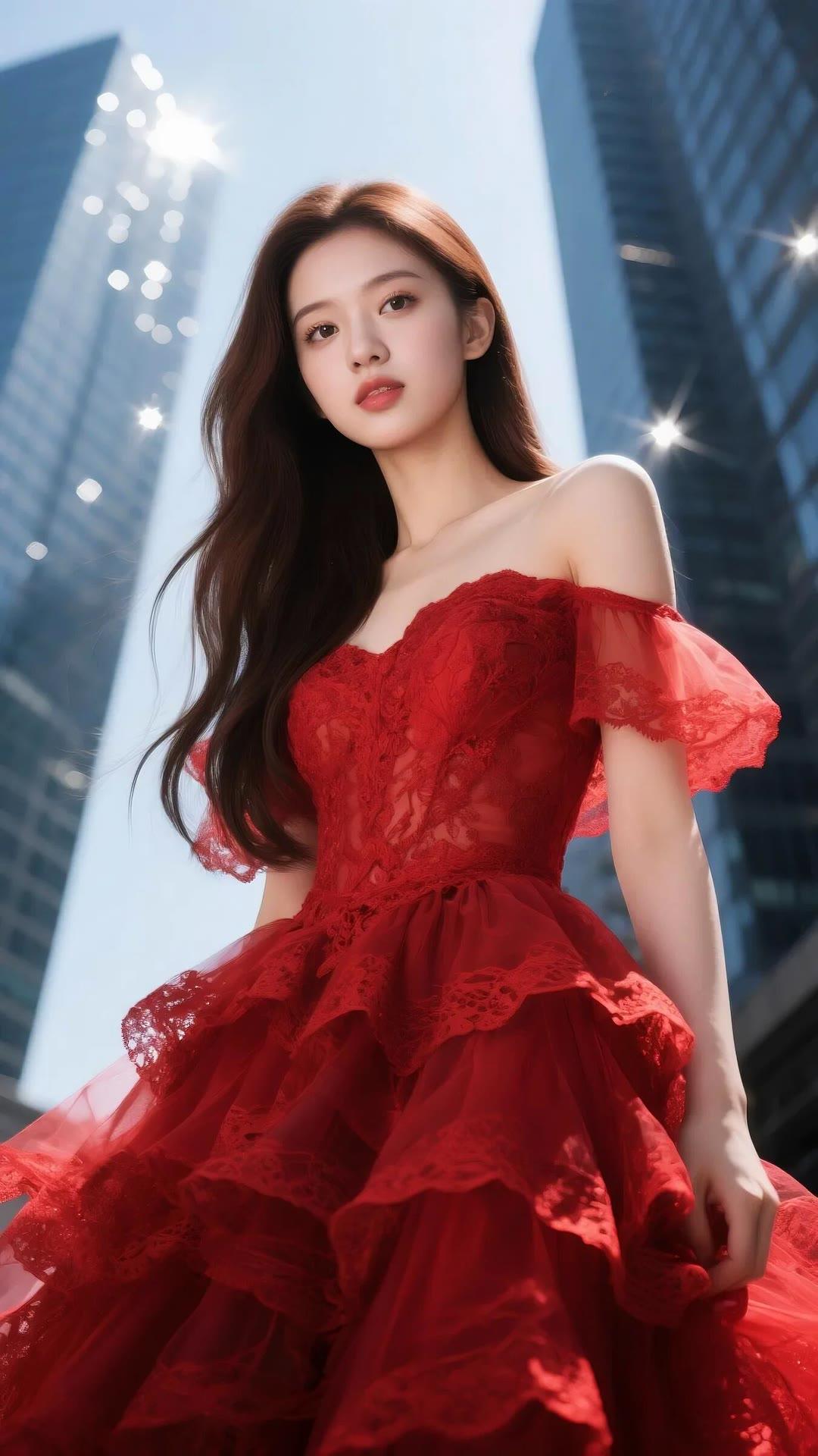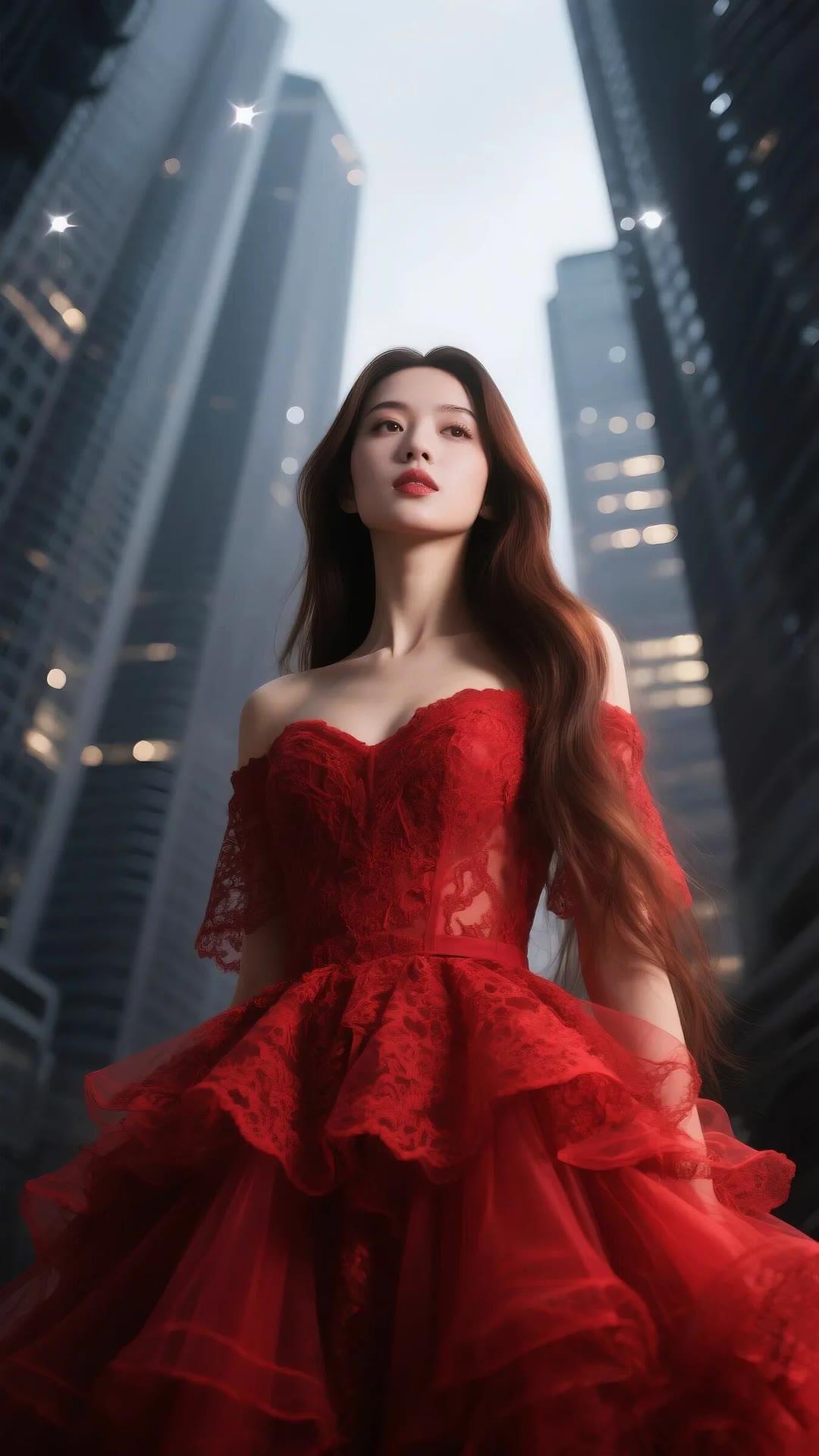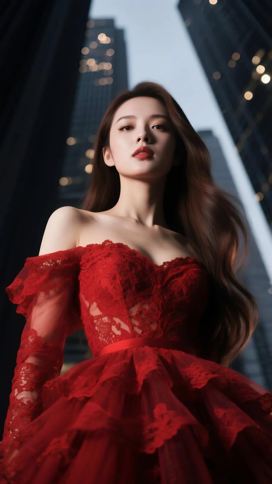 都市红衣少女,优雅动人,尽显时尚魅力!