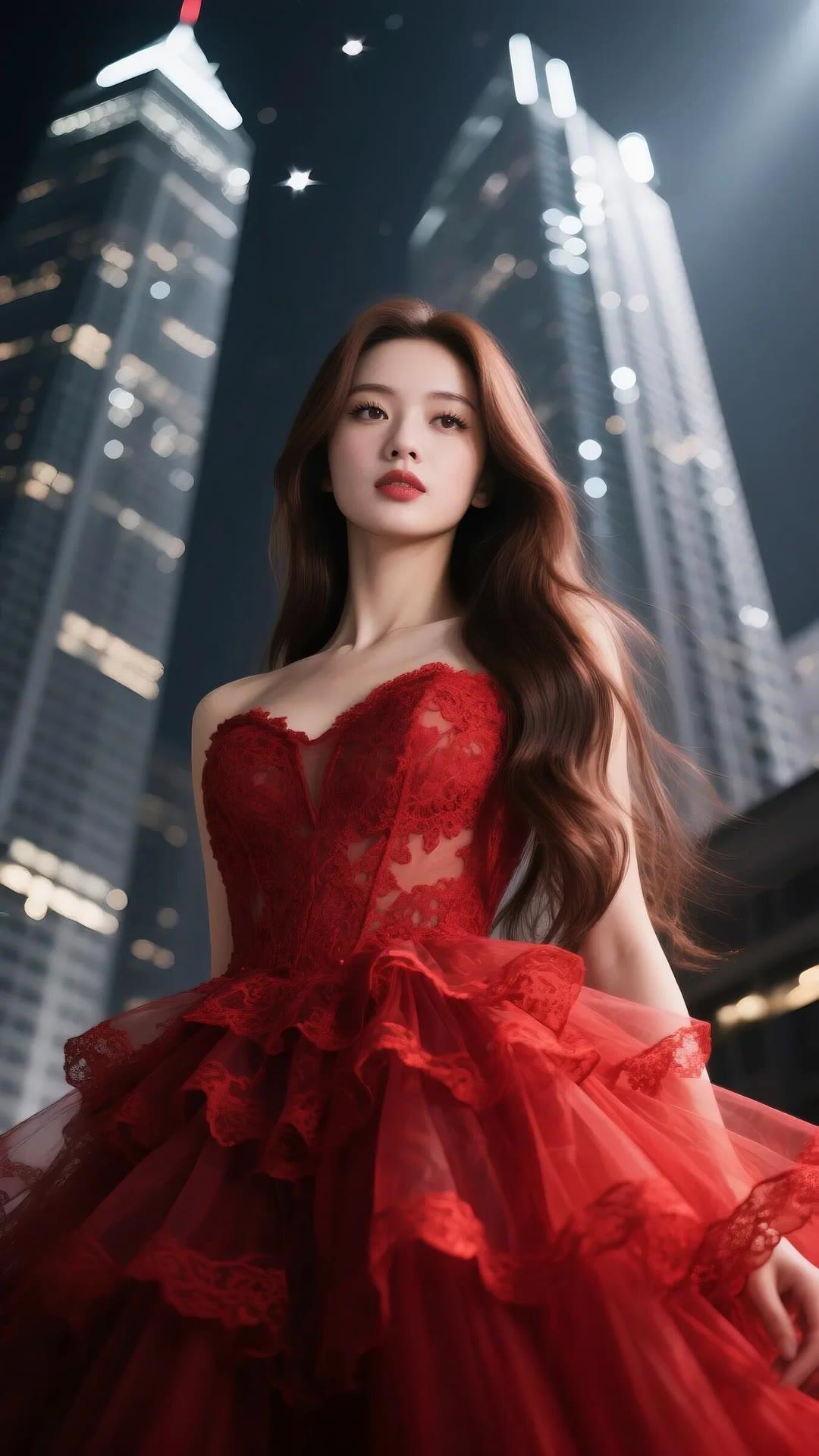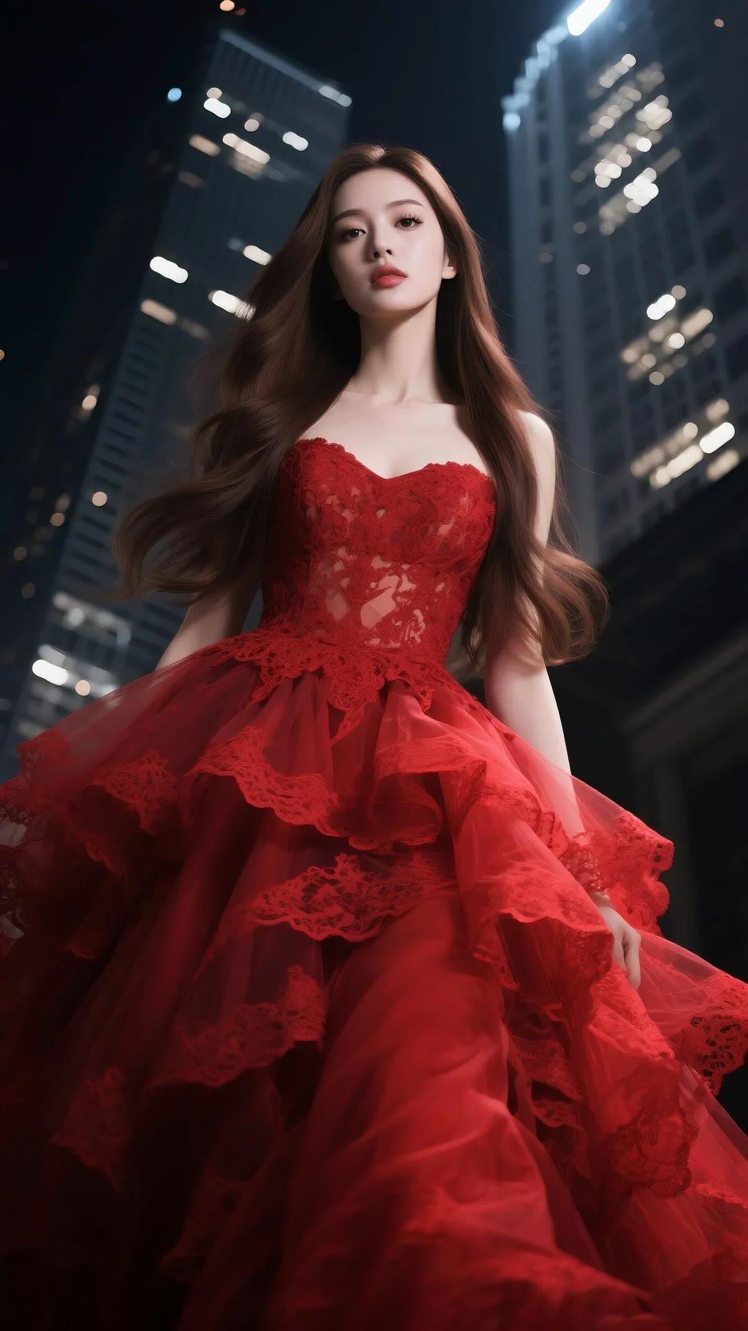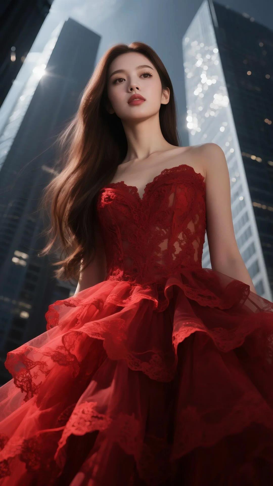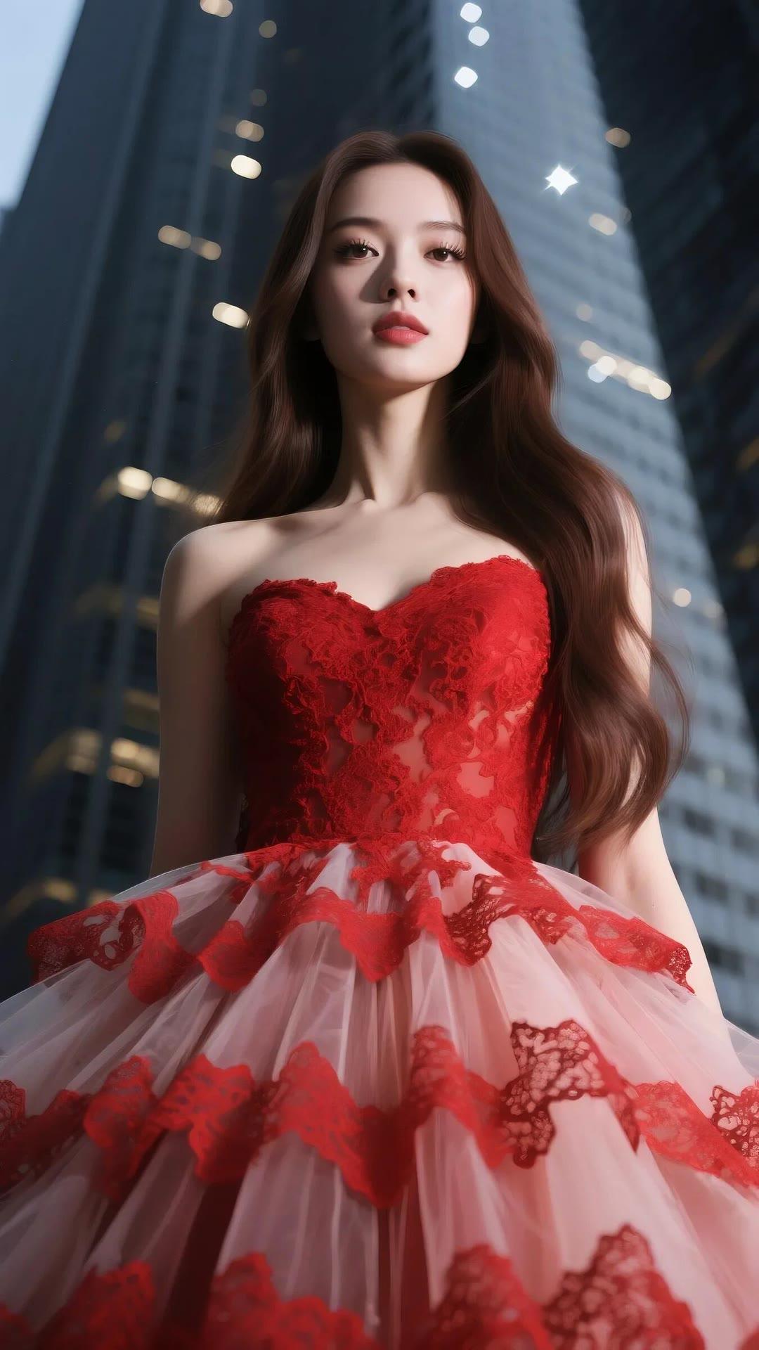 都市红衣少女,优雅动人,尽显时尚魅力!