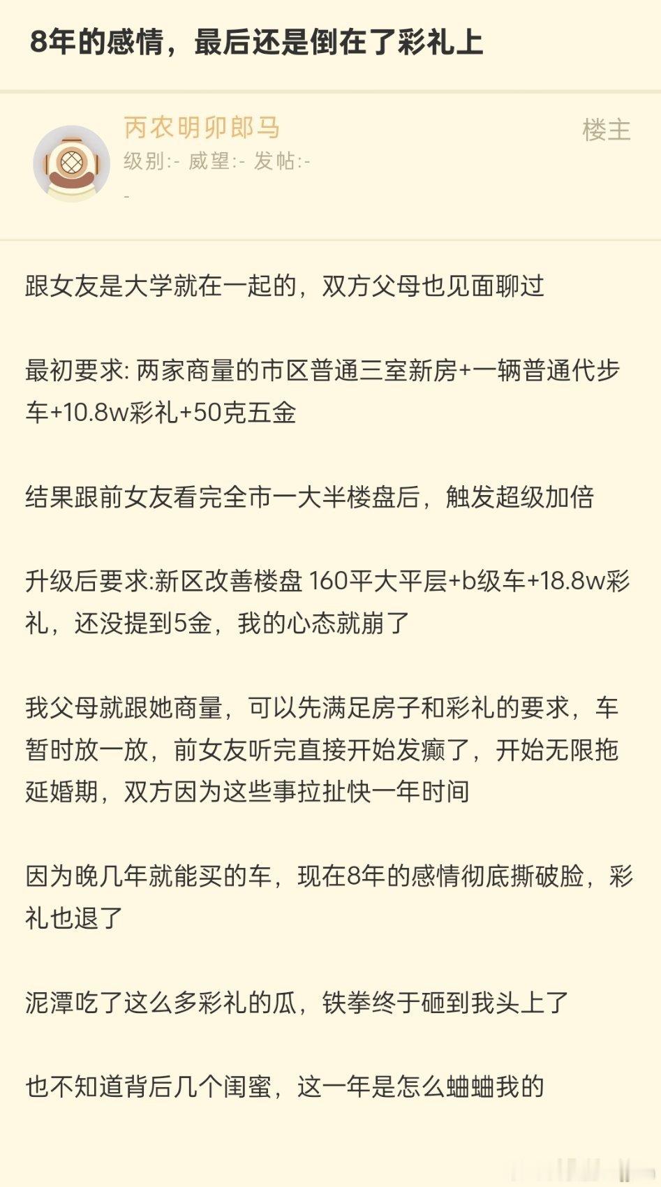 8年的感情,最后还是倒在了彩礼上
