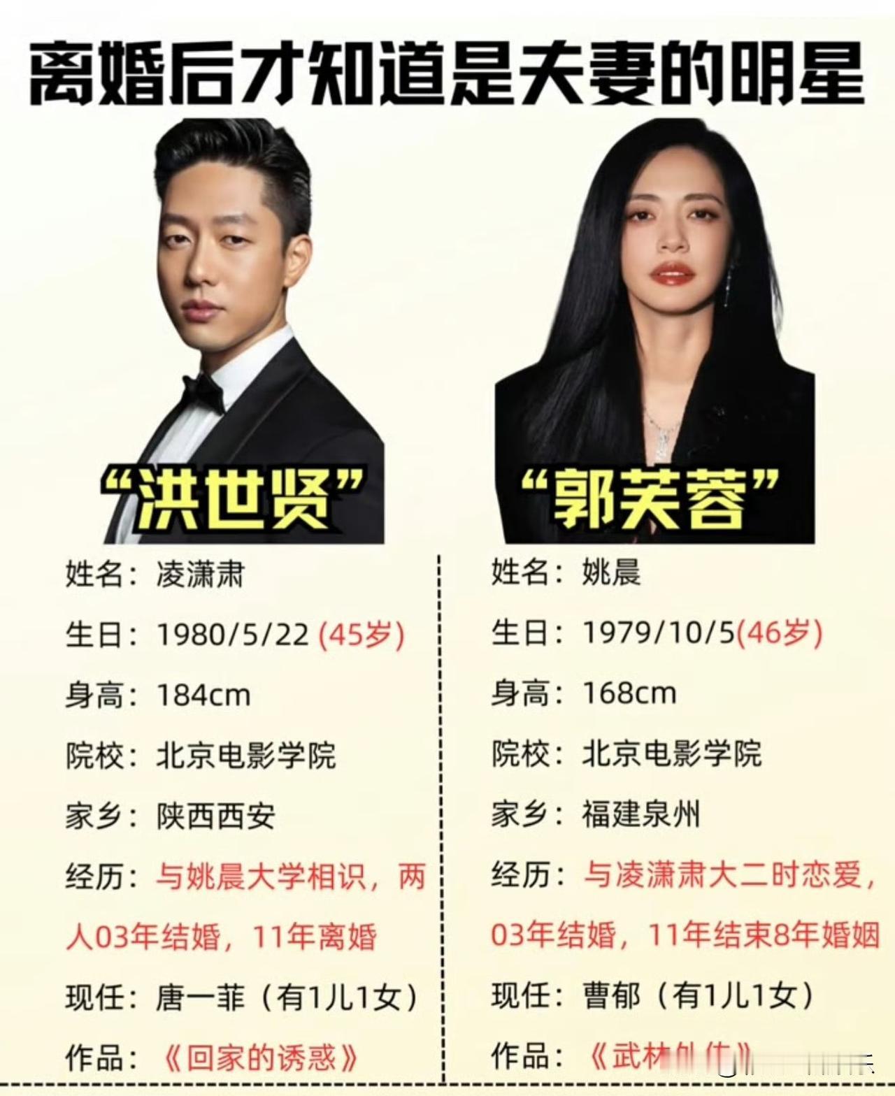 姚晨和凌潇肃有过一段婚姻,因为唐一菲介入他们的婚姻而离婚,当时闹得还很大。 姚晨无缝衔接曹郁,生了一双儿女,很多人都说为什么姚晨和凌潇肃撕,和曹郁反而不撕。 那是因为她和凌潇肃没有儿女,分开时也不体面,和曹郁有一双儿女,就是一家人了。 即使离婚了,也还因为两个孩子的原因有利益关系,他们是利益共同体,所以撕曹郁等于撕自己。