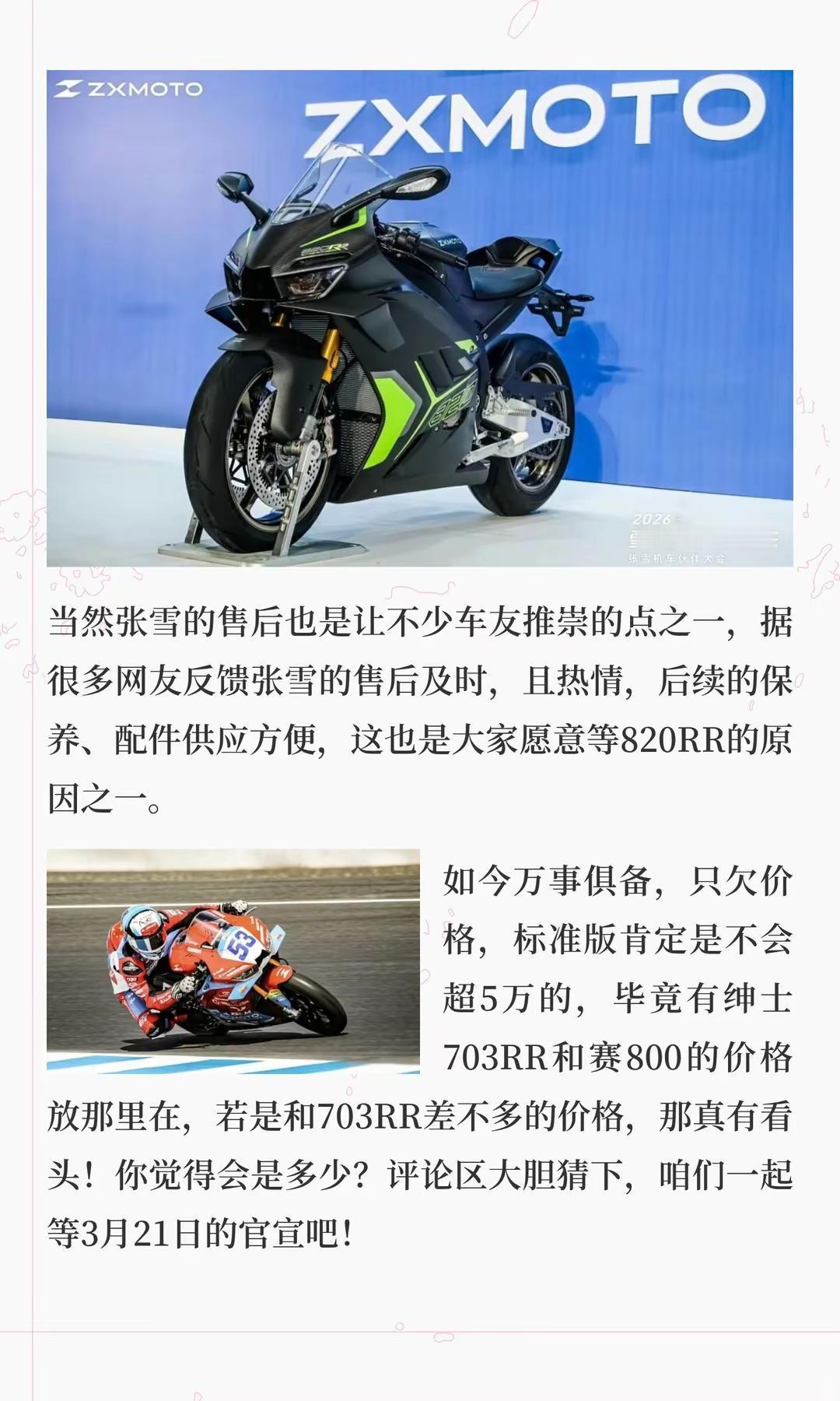 赛道光环加持,张雪820RR定档3月21。WSBK光环加持,张雪820RR定档3月21日,价格可能和703RR相近?摩托车 张雪机车 张雪820rr 新车资讯