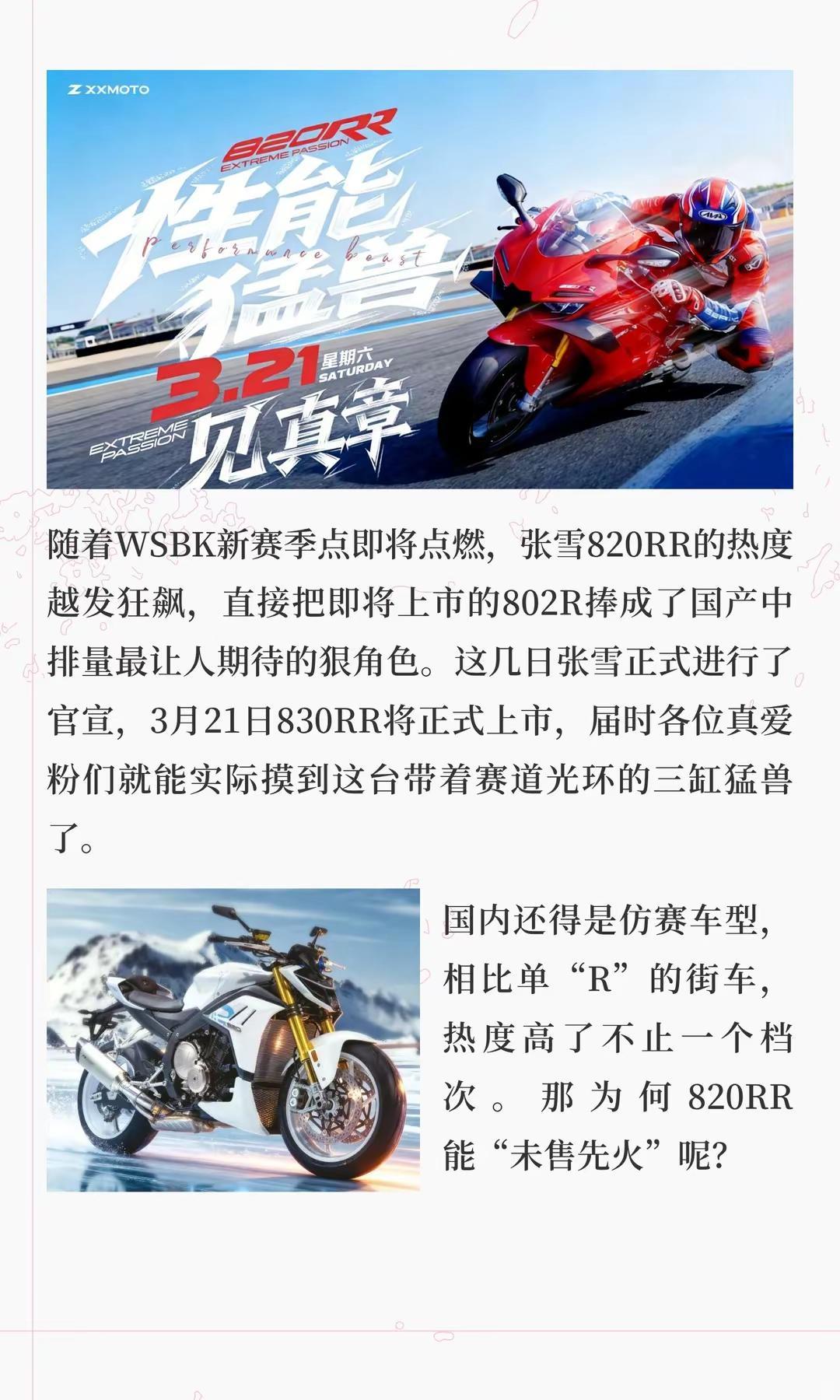 赛道光环加持,张雪820RR定档3月21。WSBK光环加持,张雪820RR定档3