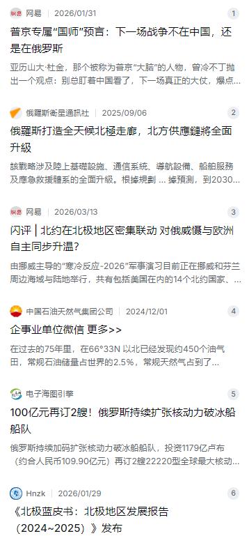 “俄罗斯国师”杜金预言:下一个爆发战争的地方,不是南海也不是台海,而是在这个地方,不过主角还是俄罗斯!杜金预测的“战场”就是我们不太关注,甚至忽略的——北极!这位被称为普京“智囊”的老爷子可不是随便说说,他早在俄乌开打前就精准预言了乌克兰会变成消耗战,这次他直接把焦点甩到了地球天灵盖,那片白茫茫的北极。 麻烦看官老爷们右上角点击一下“关注”,既方便您进行讨论和分享,又能给您带来不一样的参与感,感谢您的支持!   有个俄罗斯老头的一番话,又把全世界的目光从乌东战场拽到了地球的最北端。谁呢?就是那个经常被称为普京“大脑”或“国师”的政治学者亚历山大·杜金。这老爷子说话挺邪乎,但你不能不信,因为在俄乌冲突开打之前,他就准确预言了这仗会打成一场旷日持久的消耗战。现在他又放话了:都别盯着南海和台海了,下一场大戏,主角还是俄罗斯,但舞台会换到那片冰天雪地的——北极。   很多人一听这话可能觉得离谱,北极那地方除了北极熊和冰块,还有什么值得抢的?但恰恰是这种看似荒凉的地方,底下藏着的是能让所有大国流口水的家底。根据美国地质调查局的权威估算,北极圈底下埋着全球大概13%还没挖出来的石油,以及30%没点着的天然气。这还不算完,随着全球变暖,北冰洋的冰层化得越来越快,一条能改写全球海运历史的“黄金水道”出现了。如果走北极航道,从东亚到欧洲的航程能直接缩短近一半,省下的时间那可都是真金白银。   对于俄罗斯来说,这哪是冰啊,这就是未来的国运。俄罗斯拥有全球最长的北极海岸线,而且手里攥着一张谁也比不了的硬牌——世界上唯一的核动力破冰船队。这几年,俄罗斯在北极砸的钱超过了175亿美元,光核动力破冰船现在就手握9艘,而且还在不停地造,那款22220型核动力破冰船,简直就是破开冰层的巨无霸。普京的目标很明确,就是要让这条“北方航道”变成全天候的黄金水道,到2030年,货运量要干到1亿吨以上。这就是要把自己的主导地位焊死在北极。   俄罗斯把这儿当成了自家后院,但以美国为首的北约显然不答应。特别是芬兰和瑞典这俩北欧国家一加入北约,那局势立马就变了。北约现在等于在北极圈里对俄罗斯形成了一个环形的包围态势。光看看2026年这头几个月,北约在北极圈内就搞了三场大规模军演。特别是三月份由挪威主导的“寒冷反应-2026”,直接拉上了14个国家,动用了差不多2.5万名军人,在挪威和芬兰那片地方摆开了架势演练。这还不算完,北约还打算在格陵兰岛扩建军事基地,那地方现在又成了热点,因为美国前总统特朗普曾嚷嚷着要“买下格陵兰岛”,当时以为是笑话,现在看这背后全是战略算计。   现在北极的局势就这么僵住了。俄罗斯的态度很硬:这地方我有历史主权,更是我的安全红线,不管是开矿还是通航,都得按我的规矩来。为此,俄罗斯不仅升级了军事基地,还立了规矩,比如要求外国船只要走北方航道,必须提前45天报告,接受检查。而美国和北约则打着“自由开放”的旗号,试图用军事存在来打破俄罗斯的垄断。双方就像在冰面上对弈,走一步看一步,军事化的动作越来越频繁,擦枪走火的风险也在悄悄累积。   更有意思的是,这场博弈里还掺杂着盟友之间的那点小心思。在最近的北约演习里,美国缺席了丹麦和德国主导的军演,却参加了挪威主导的。原因很简单,美国想拉拢挪威在北极扎根,但对丹麦因为格陵兰岛的事闹别扭,对德国也有隔阂。加拿大现在也紧张,一边要配合北约防着俄罗斯,一边还得提防着美国对自己北极领土的觊觎,甚至开始悄悄跟欧洲加强军事合作,想摆脱对美国的过度依赖。你看,这北极的水,远比想象的深。   回过头看杜金的预言,其实并非空穴来风。当全球都在盯着炎热地带的热点时,地球最冷的那一块正在被各方势力悄悄加热。这里有能源,有航道,还有战略核潜艇最隐蔽的发射阵位。对咱们中国来说,北极同样重要,我们主张和平利用,推动的是“冰上丝绸之路”,踏踏实实地搞亚马尔液化天然气项目这样的合作,毕竟对任何国家来说,家里烧的暖气、工厂用的能源,如果能从北极这条新路子过来,那都是实实在在的实惠。   世界格局的改变,往往就发生在这些被忽视的角落。那片白茫茫的冰原,恐怕很难再宁静下去了。