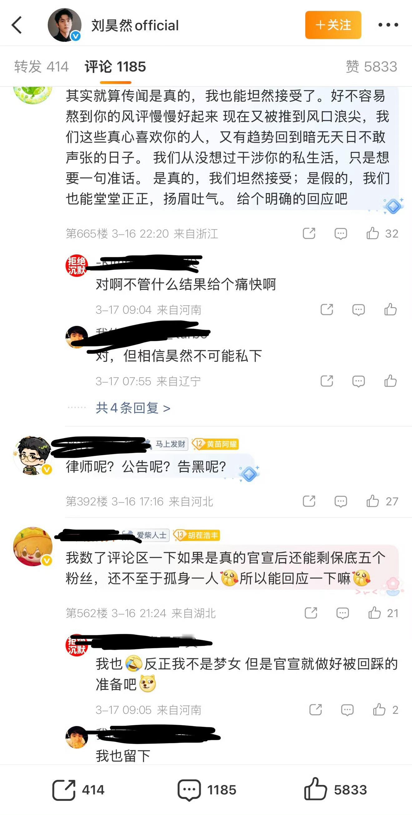 刘昊然工作室下的评论,突然意识到他工作室没出来辟谣诶